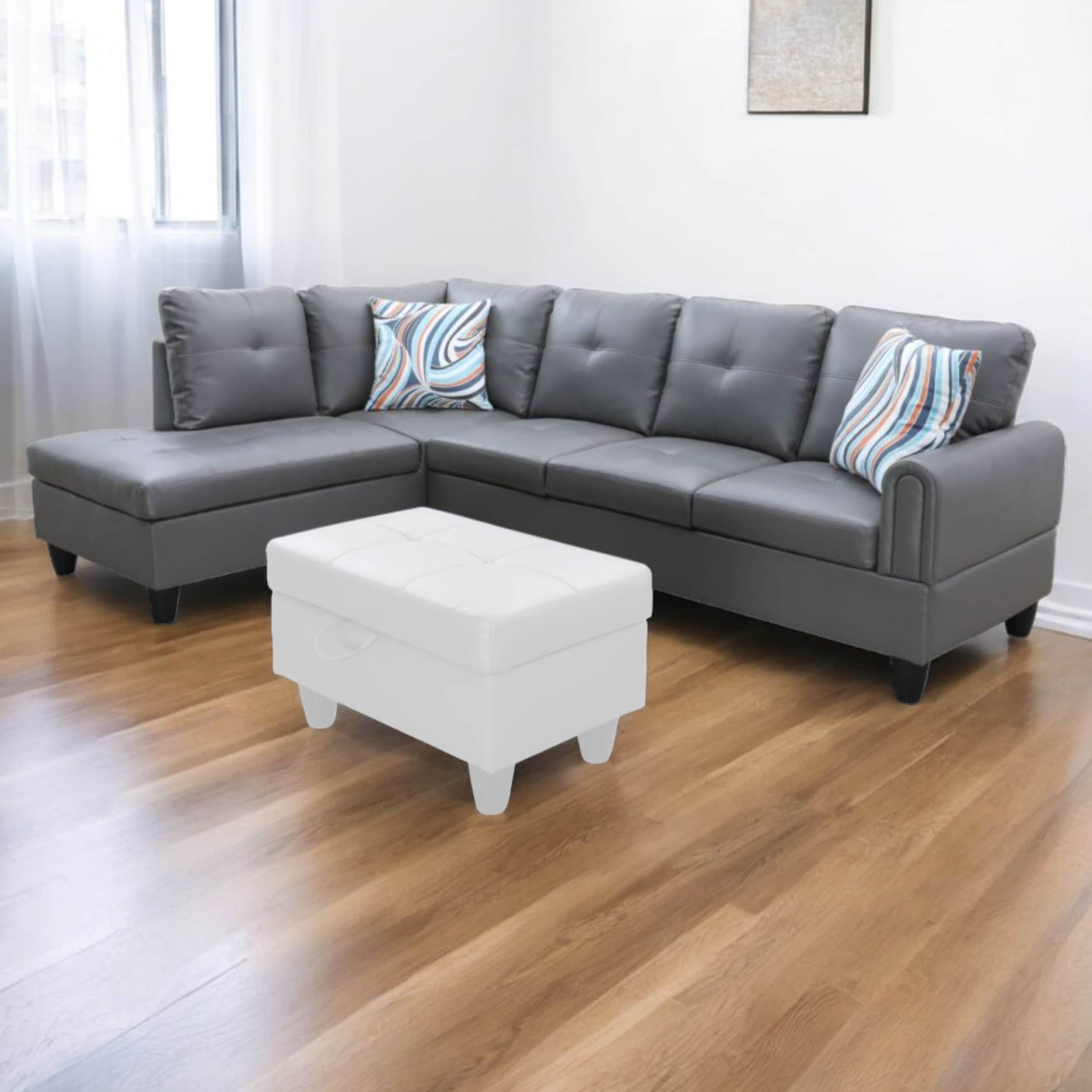 105" Sectional Sofa with Storage Ottoman, L-Shape Couch with 2 Pillows and Cup Holders, Sectional Sofa with Reversible Chaise