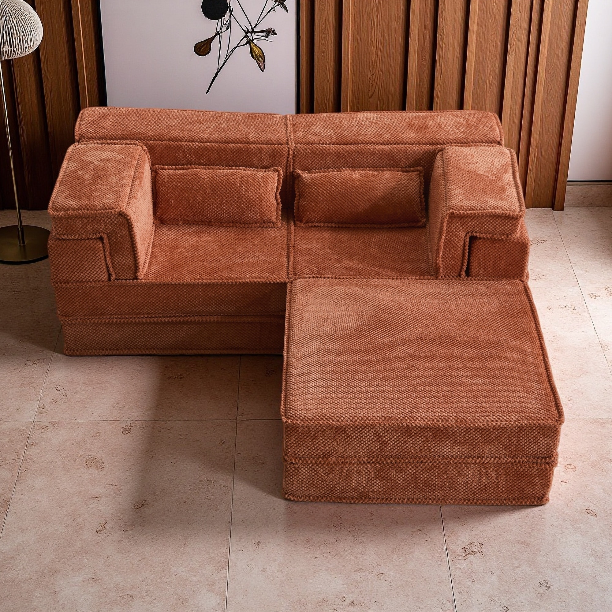 78.74" Circle Fleece Fabric Boneless Modular Sectional Sofa with Ottoman and Memory Foam (2-Seater)