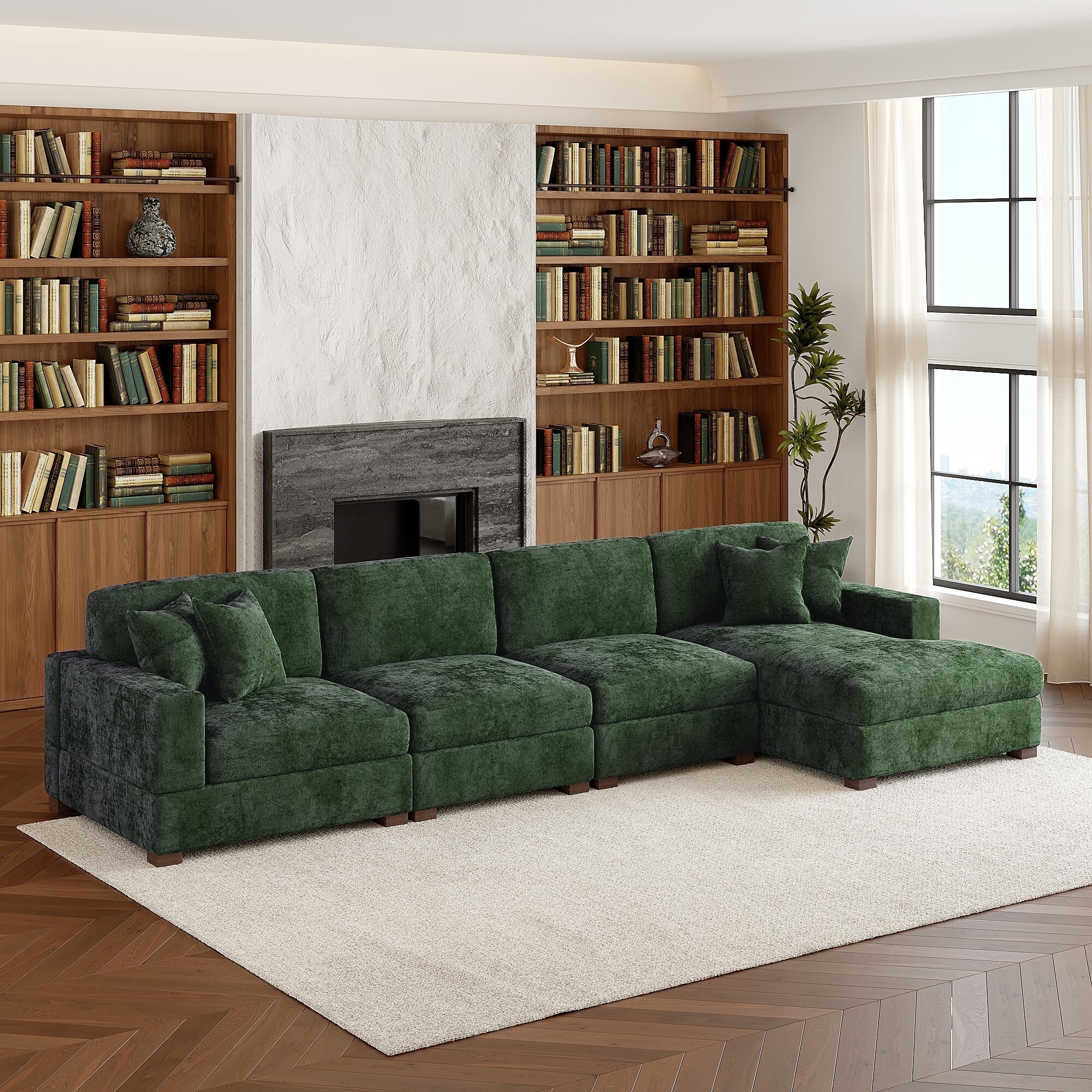Modern Oversized Chenille Modular Sectional Sofa With Chaise