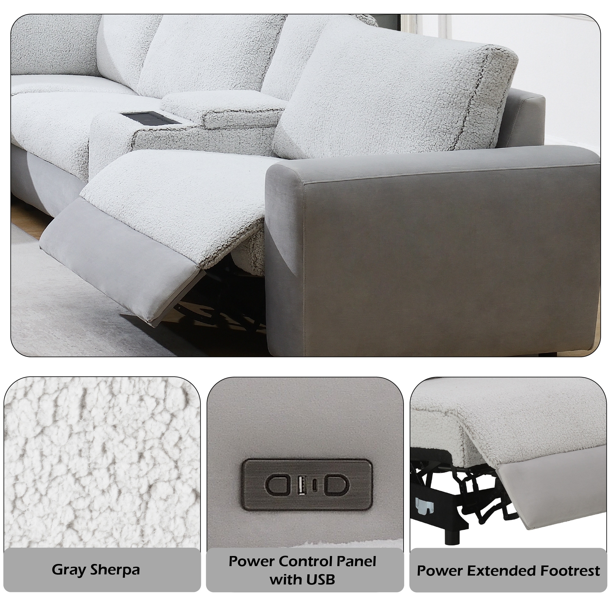 Tarrance Modular Gray Sherpa & Velvet Power Recliner Sectional w/ Multifunction