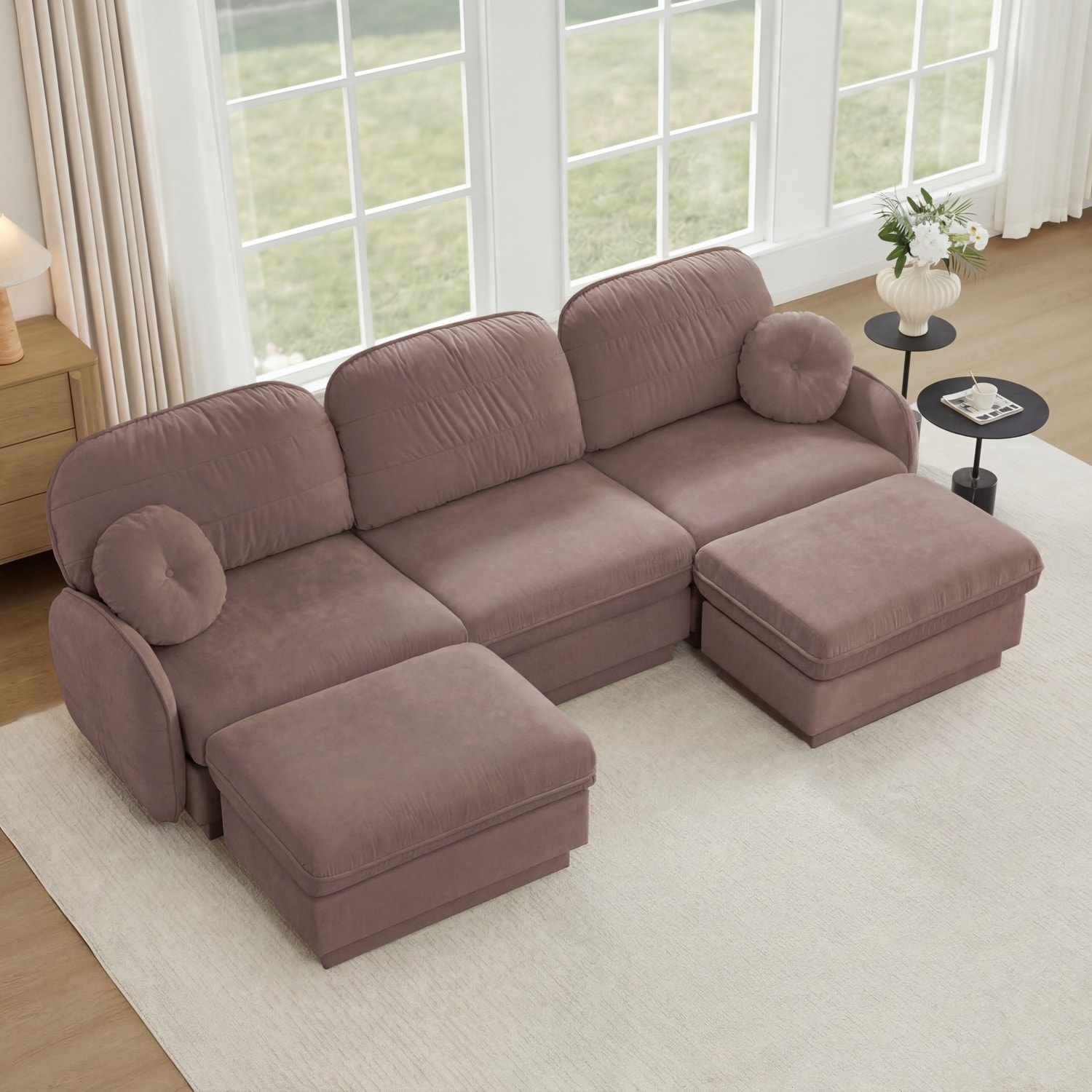 105" Chenille Sectional Sofa with 2 Round Pillows and 2 Movable Ottomans