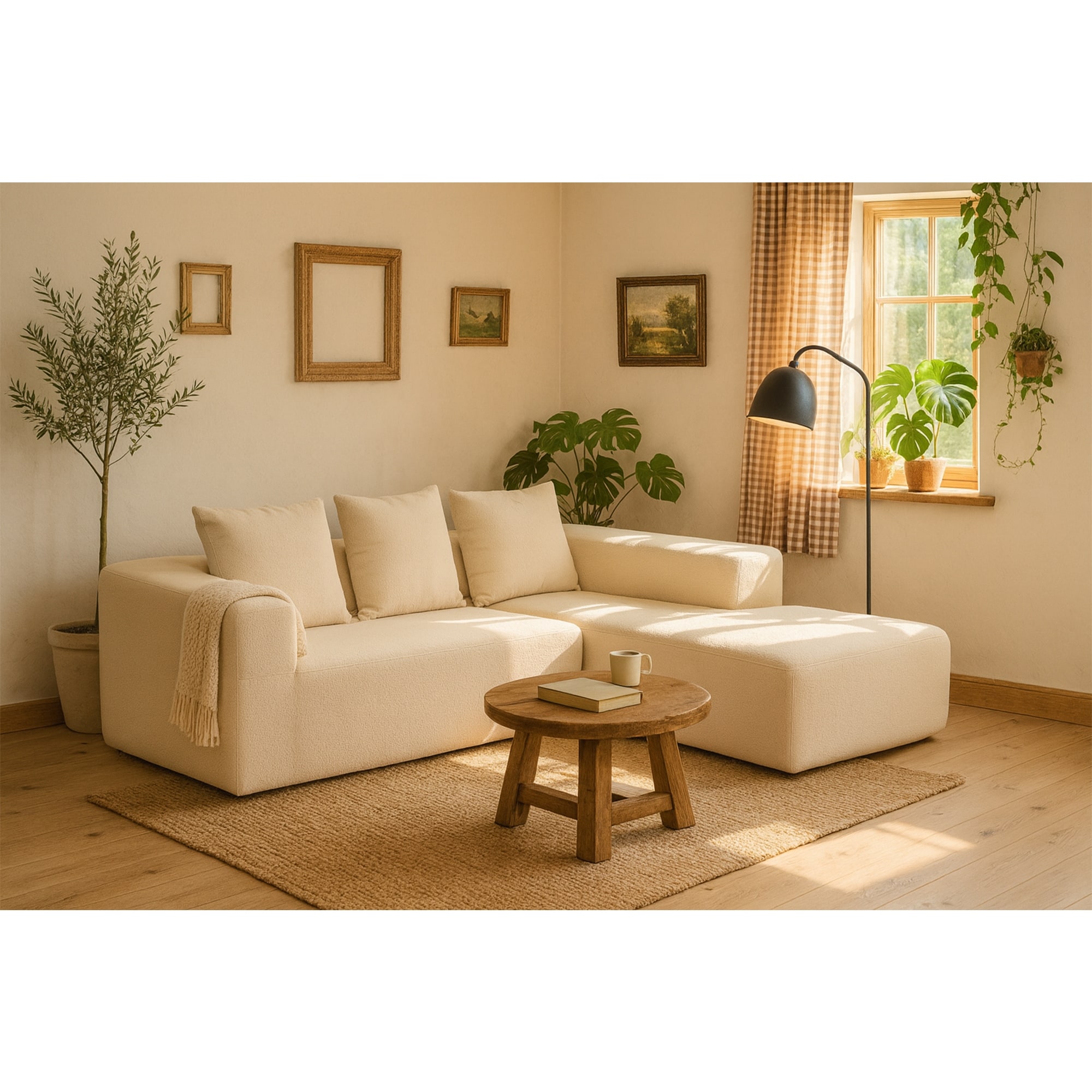 78.7" Chenille 2-Seater Sectional Sofa with Ottoman & Crescent Armrests