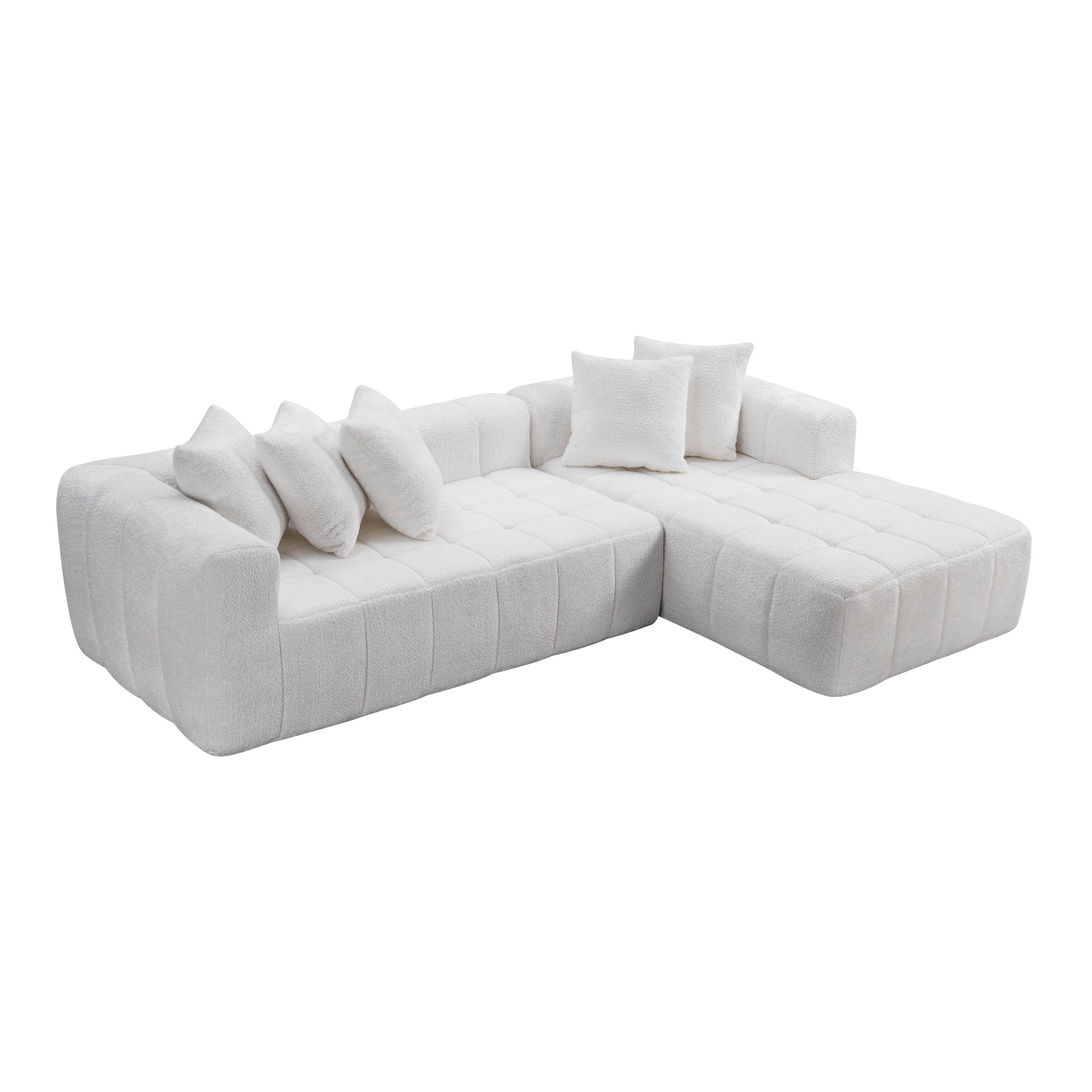 104" Plush Fabric L-shaped Modular Sectional Sofa with Side Pockets and No Assembly Required (Right Chaise)