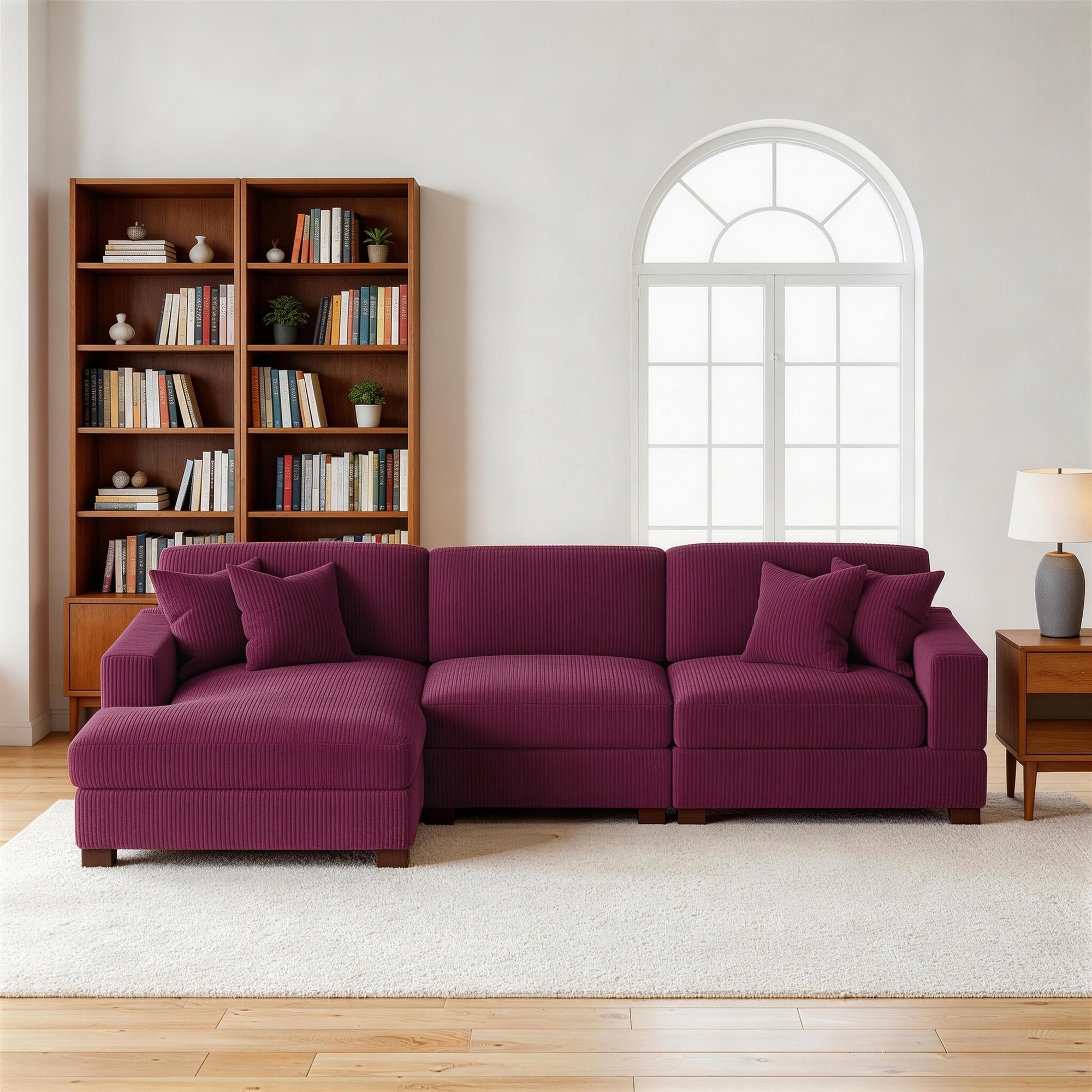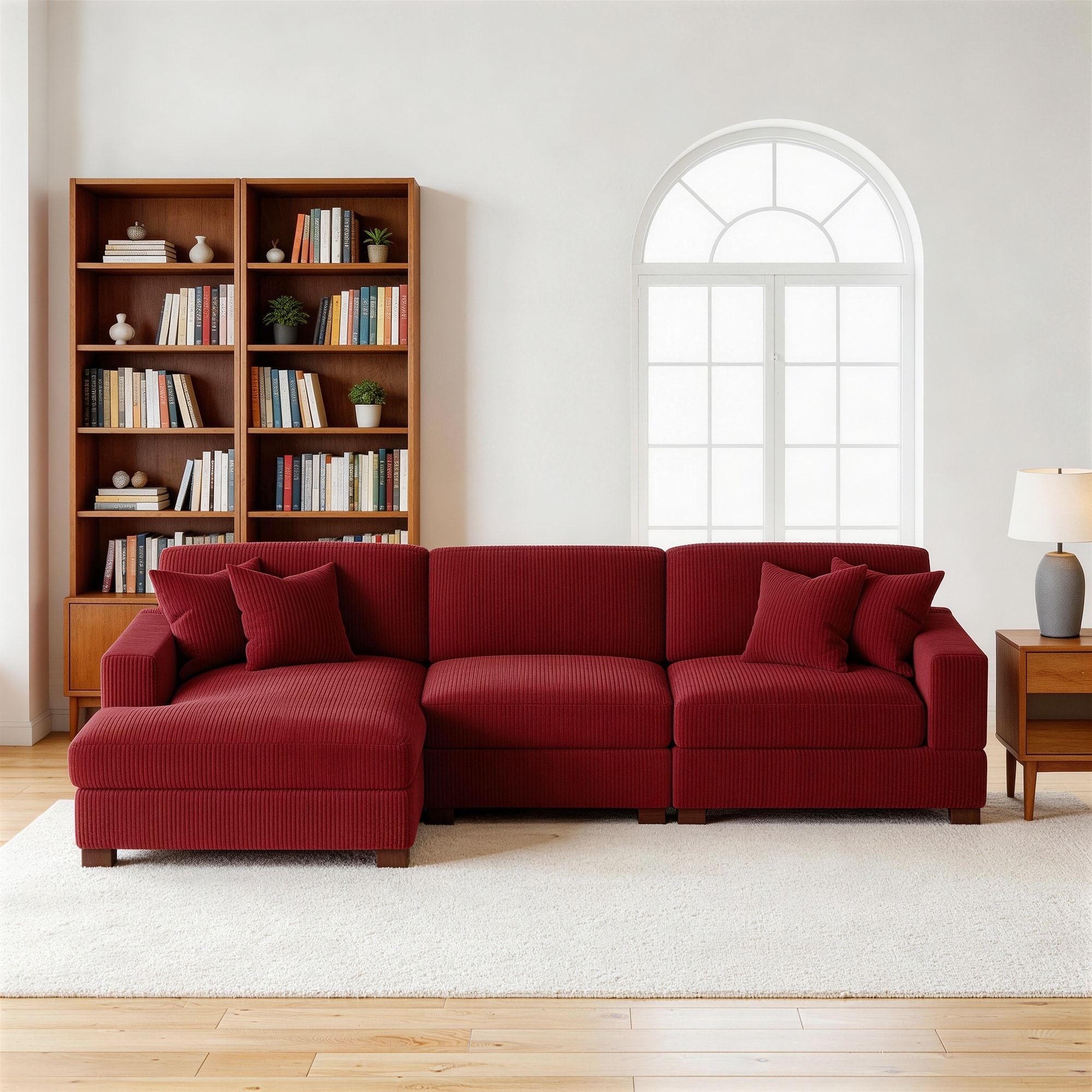 118" Modern Corduroy L-shape Sectional Sofa for living room