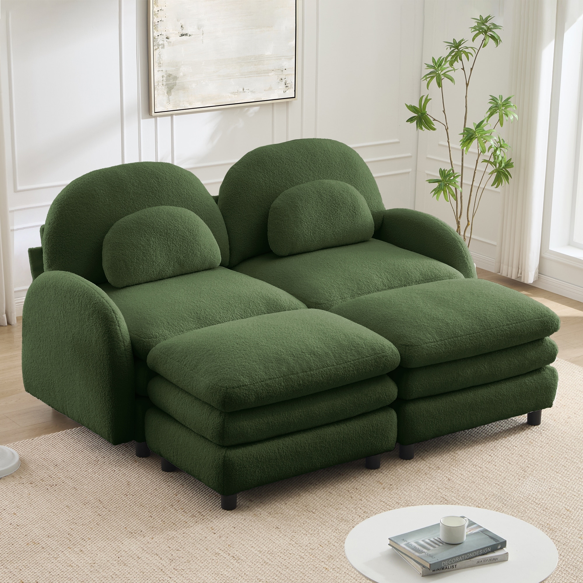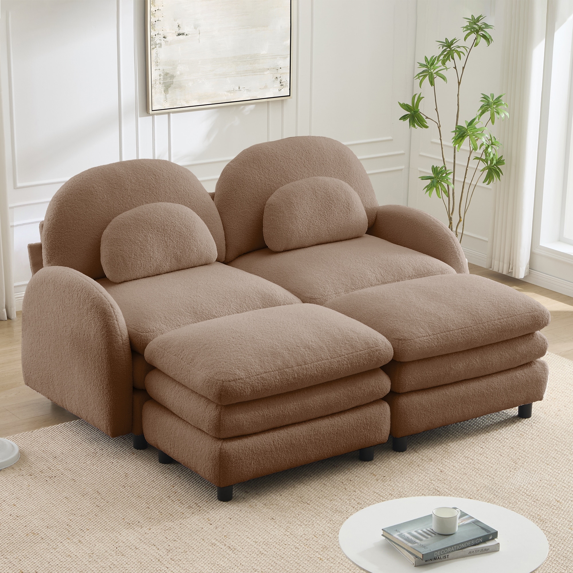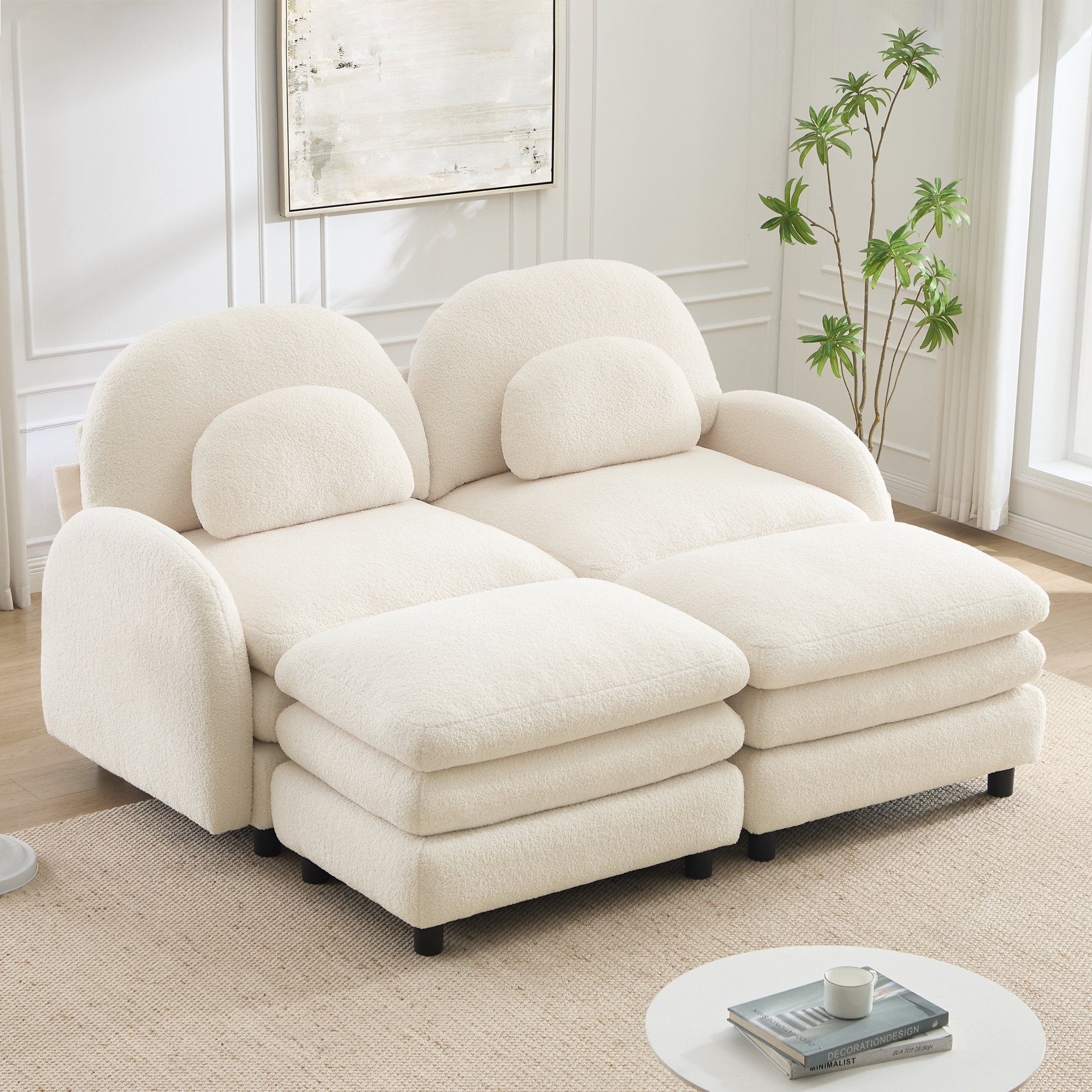 GDFStudio Harlow Teddy Fabric 2-Seat Modular Couch with Double-Layer Cushions and Curved Lumbar Pillows