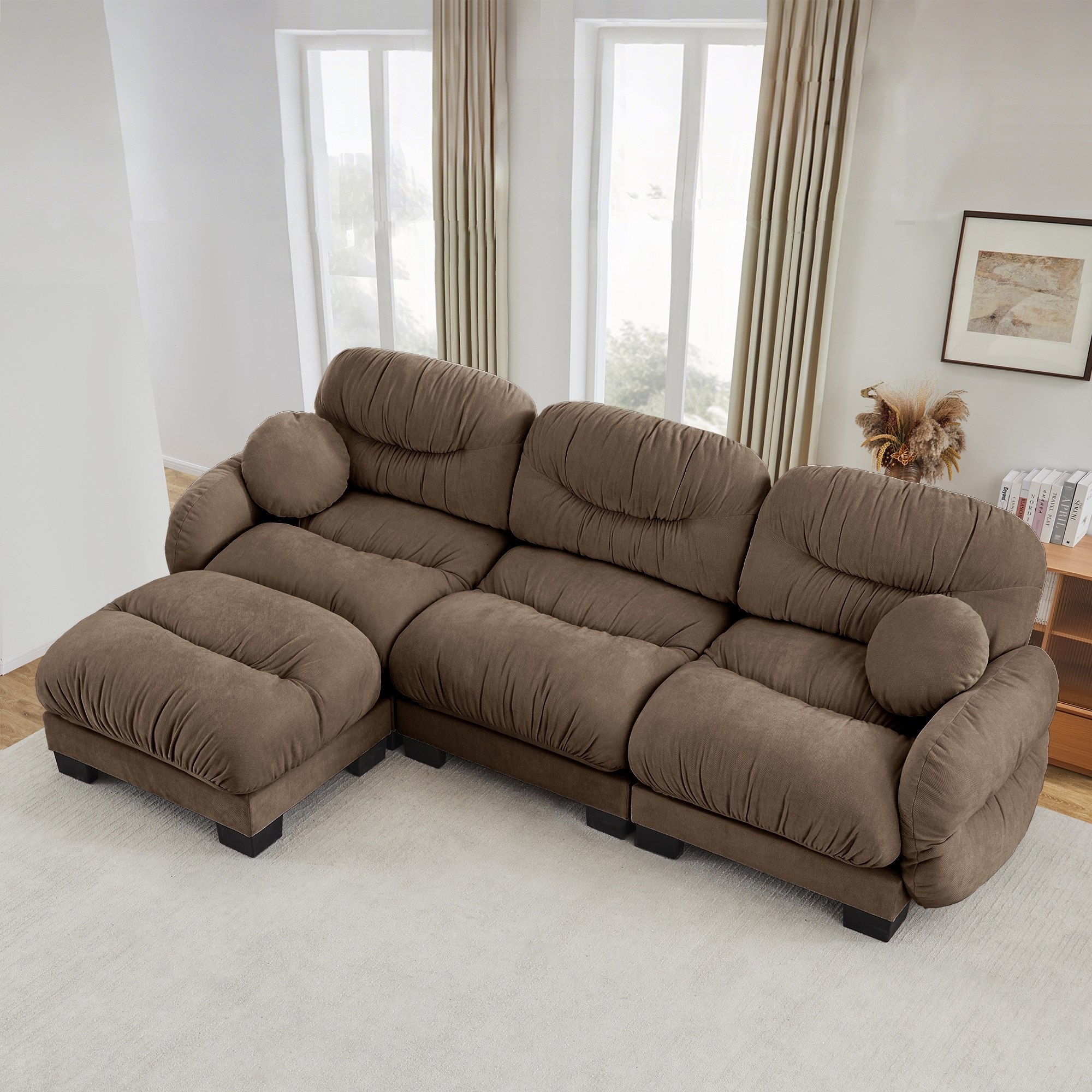 GDFStudio Ellis L-Shaped 3-Seater Chenille Modular Sofa with Ottoman and Pleated Backrest