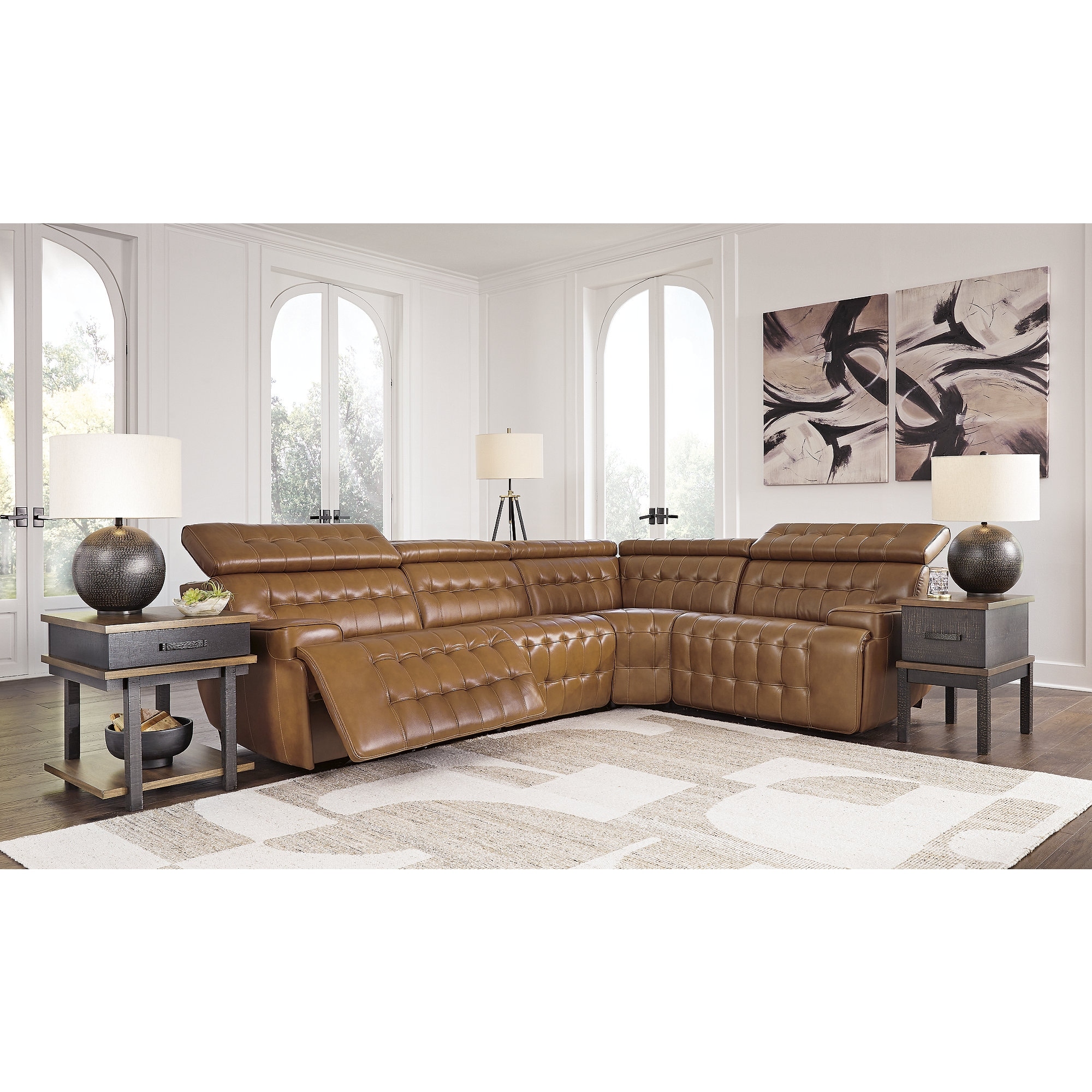 Signature Design by Ashley Temmpton Light Brown 4-Piece Reclining Sectional - 124.75"W x 92.5"D x 34.75"H