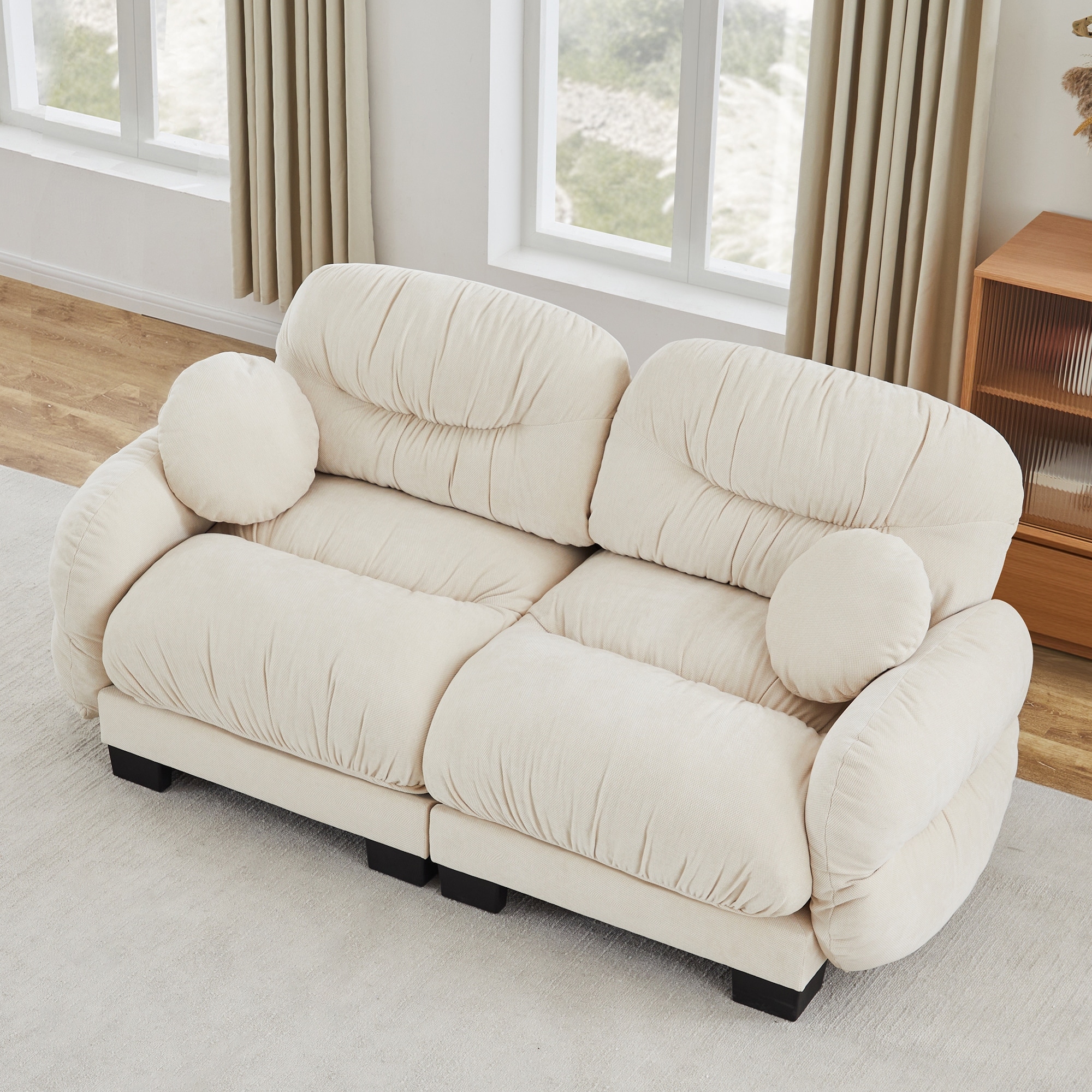 Modern Luxury Corduroy Boneless Curved Sectional Sofa with Pillows