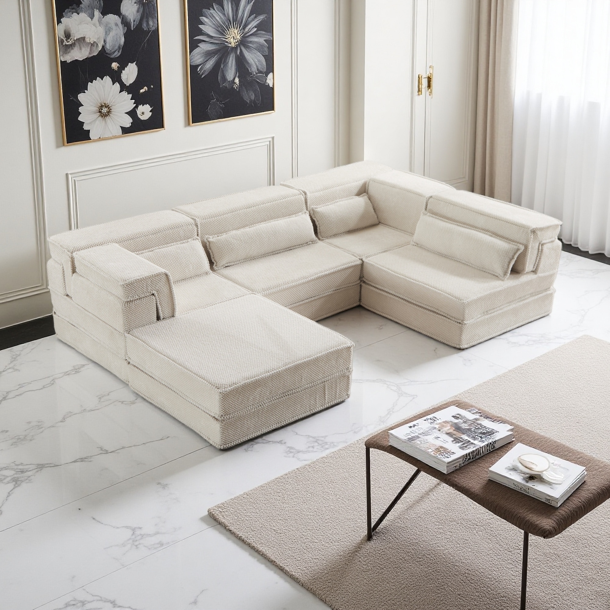 146" Modern U-Shaped Flannelette Boneless Modular Sectional Sofa with Ottoman