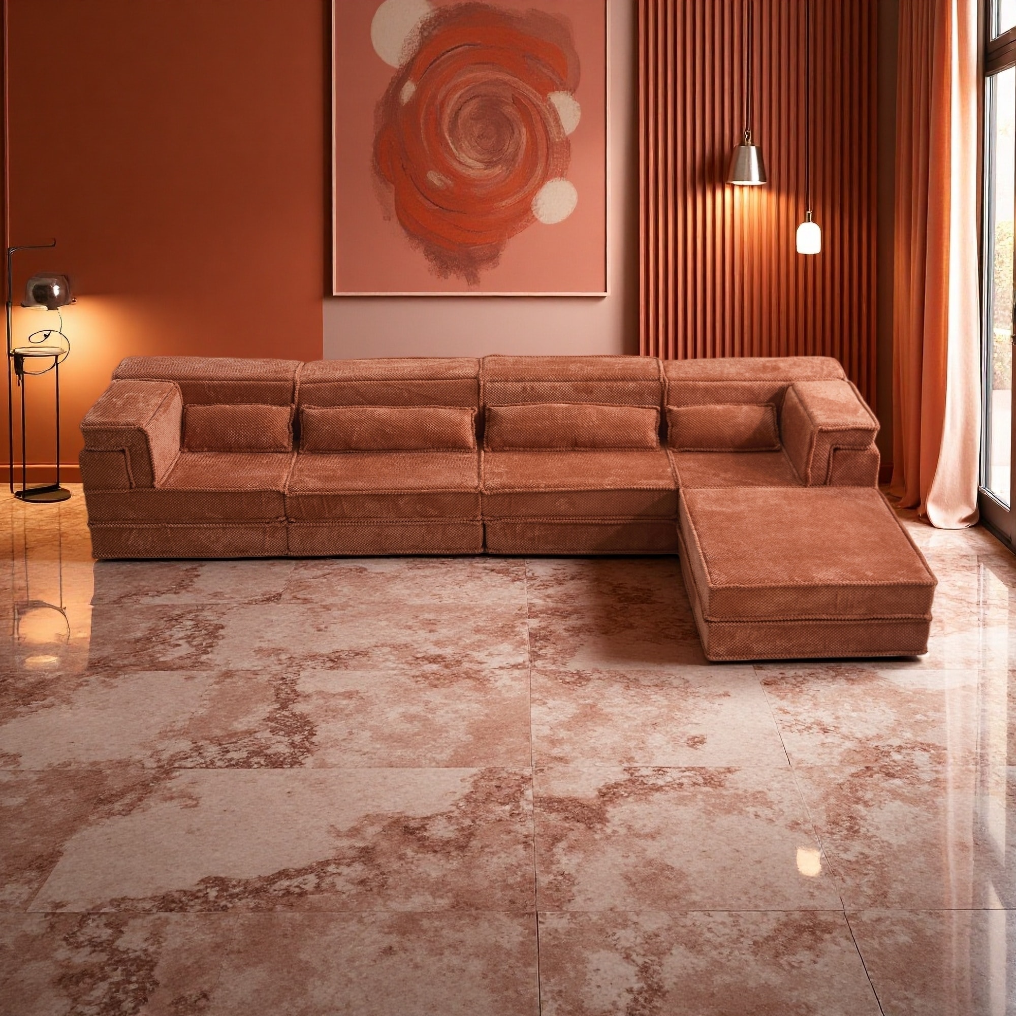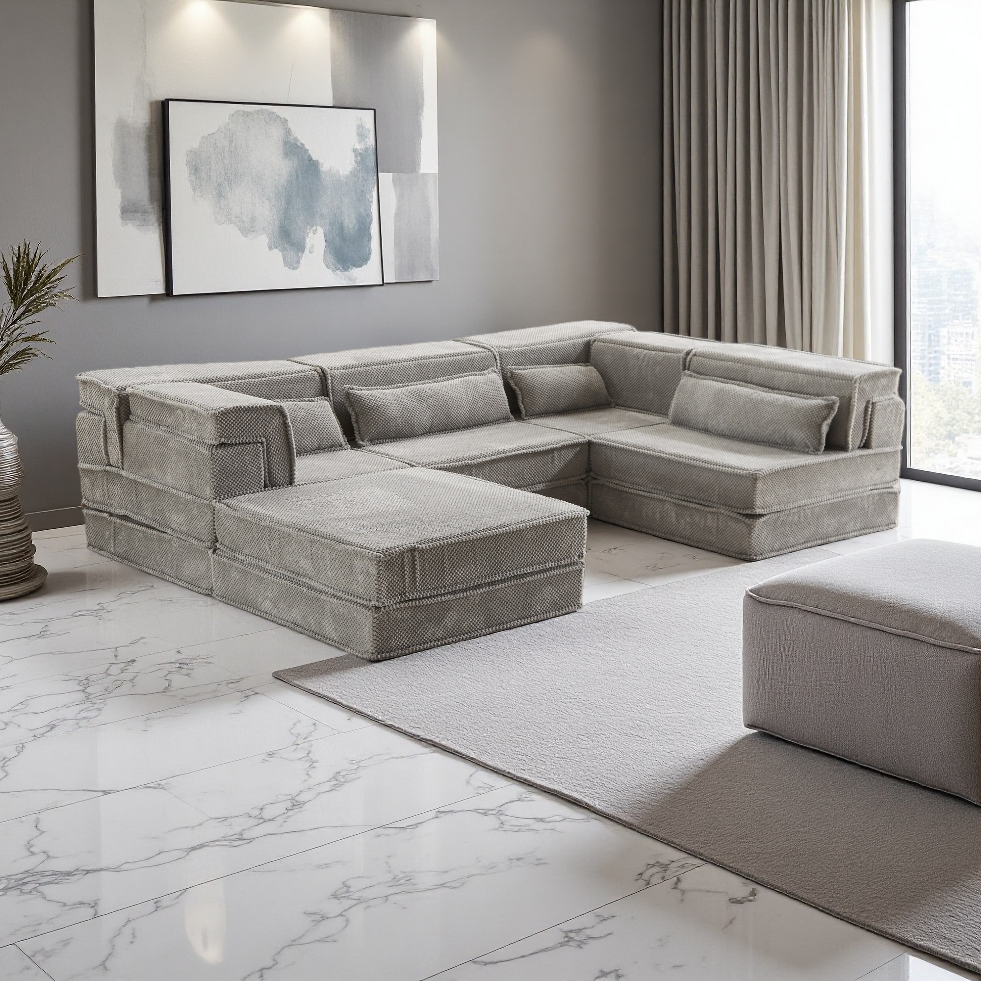 184.25" Chenille Modular Sectional Sofa 6-Piece Set with 6 Pillows, No Assembly