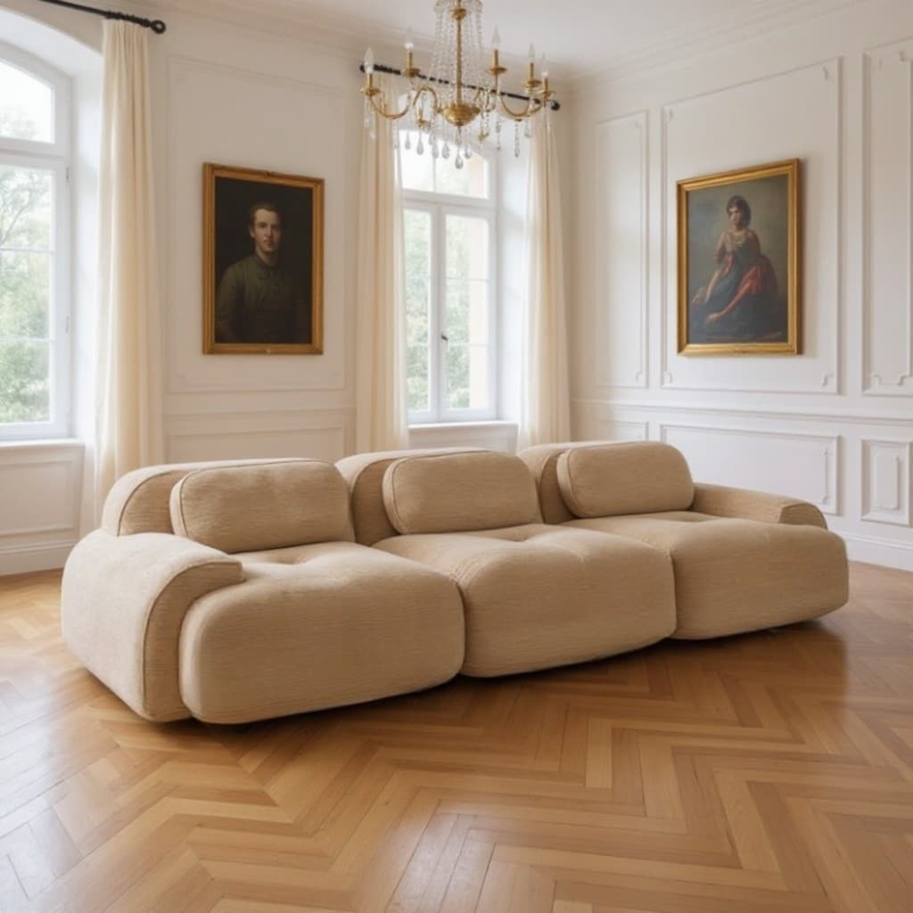 Beige Cotton-Linen Modular Sectional Sofa with Storage, Plush Cushions anda Kid-Friendly Design - 78.3 x 24 x 24 in