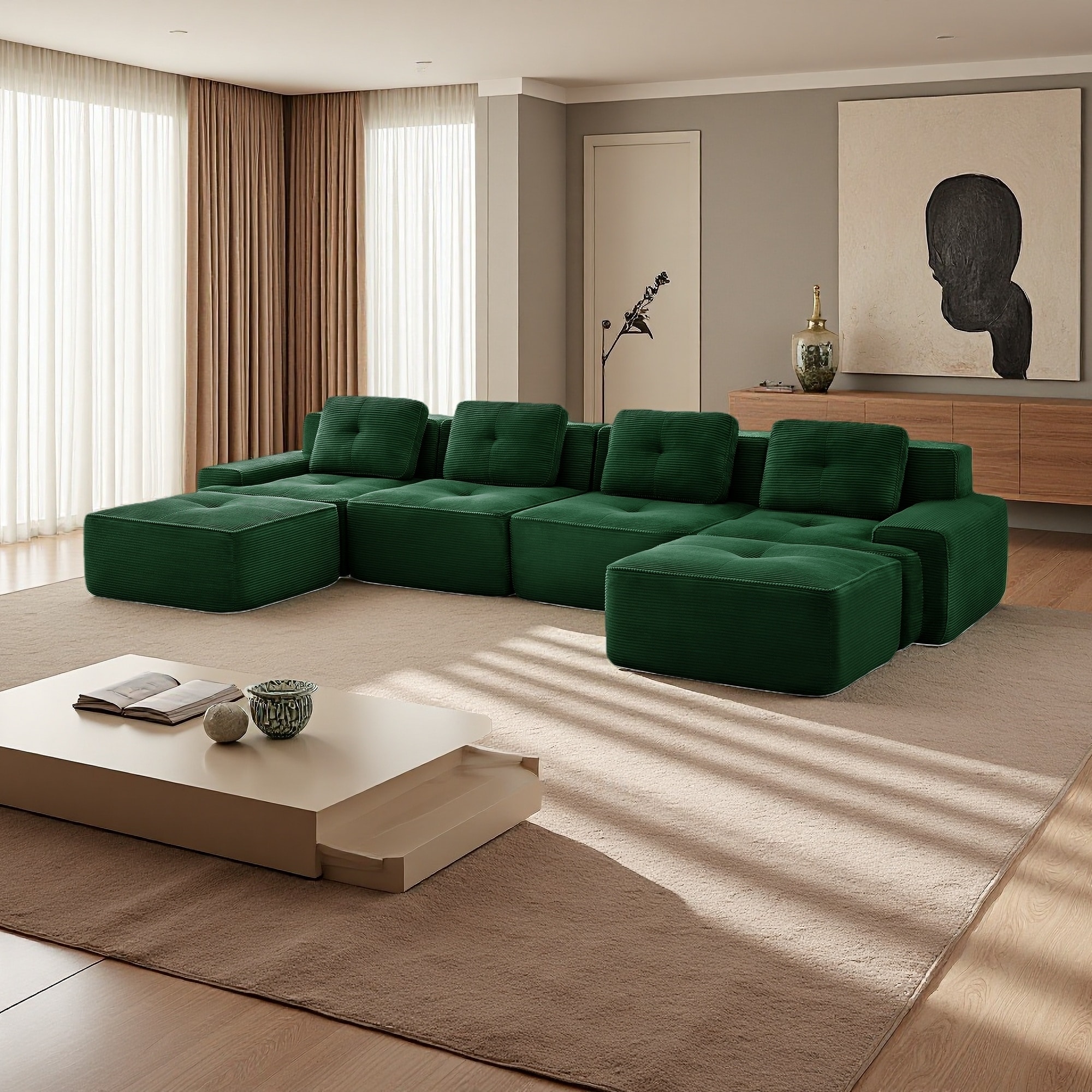 152.8" Corduroy U-Shaped Modular Sectional Sofa with Deep Seat and 2 Movable Ottomans