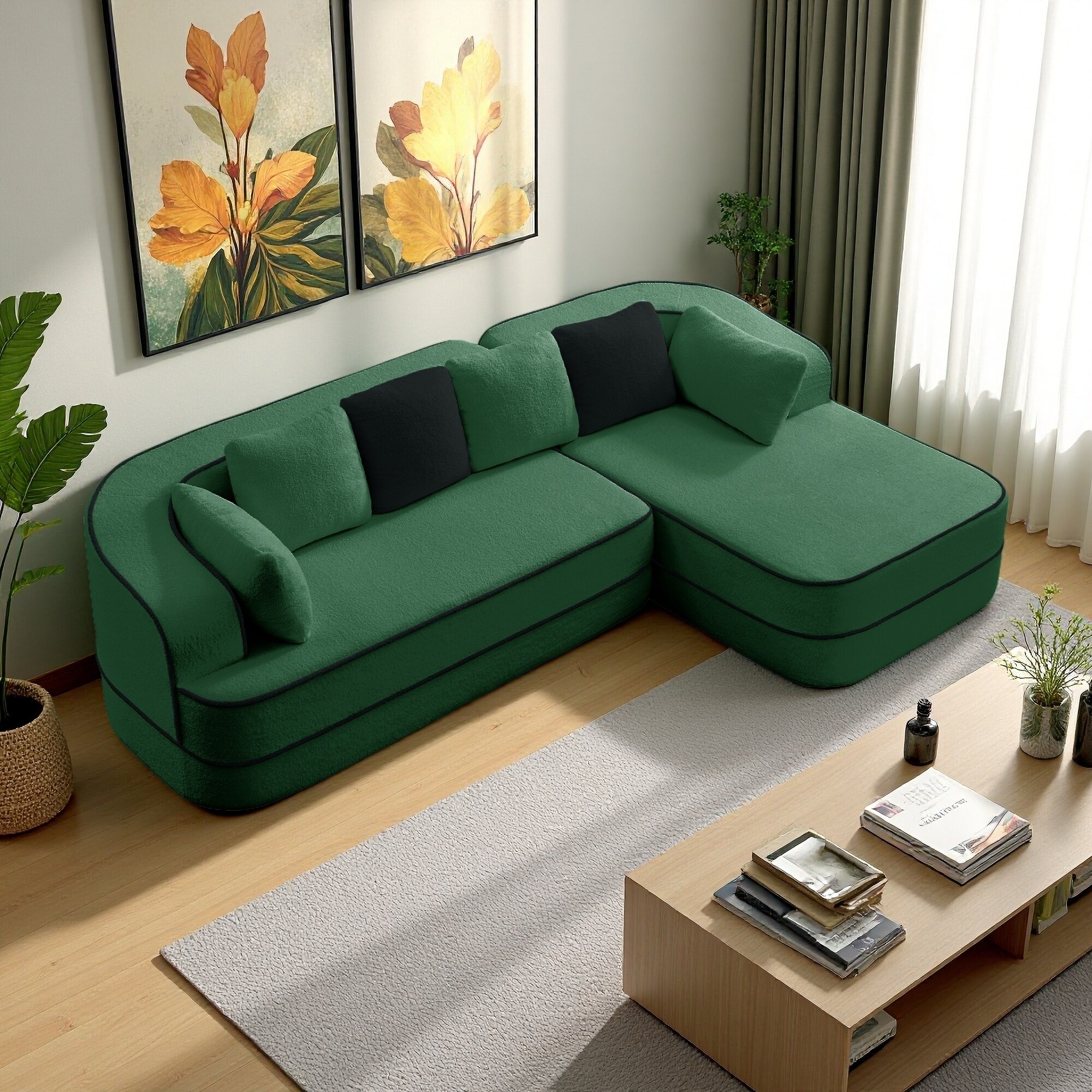 105.9" Teddy Fabric L-Shaped Modular Sofa with Chaise, No Assembly Required and Contrast Color Design