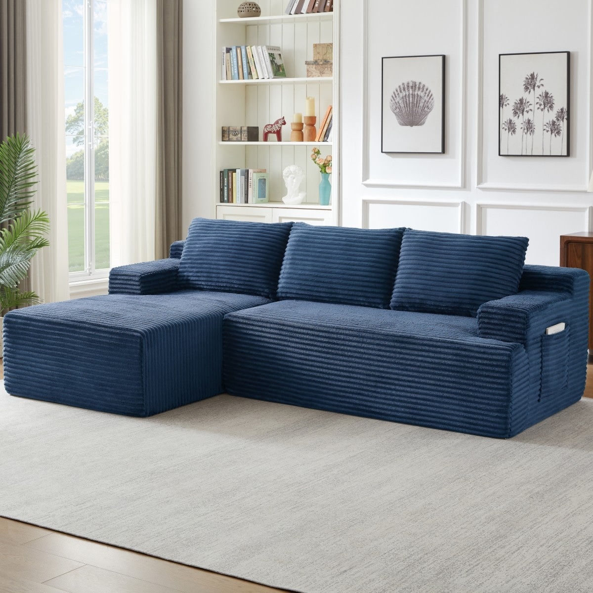 82" W Plush Corduroy Modular Sectional Sofa Chaise Lounge