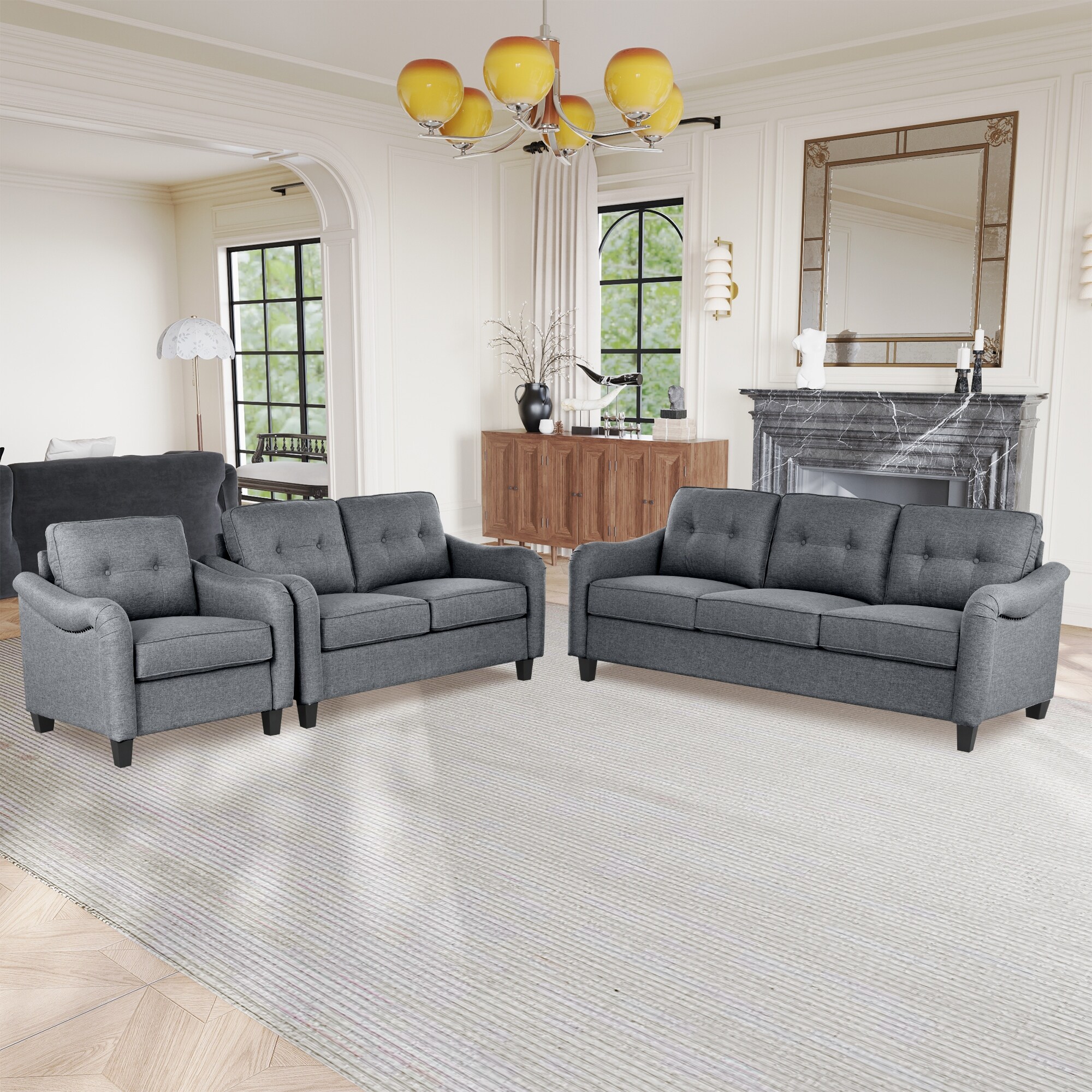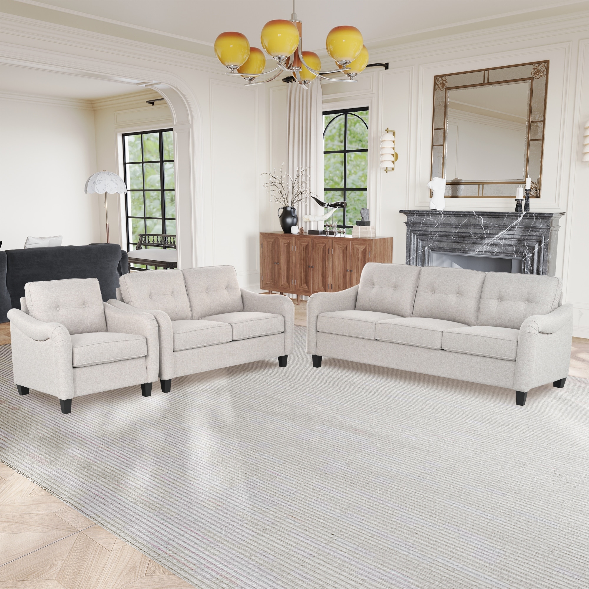 3-Piece Nailhead Trim Sectional Sofa Set, 3 Seat Sofa + 2 Seat Couch + Accent Chair, Living Room Sofa Lounge Armchairs