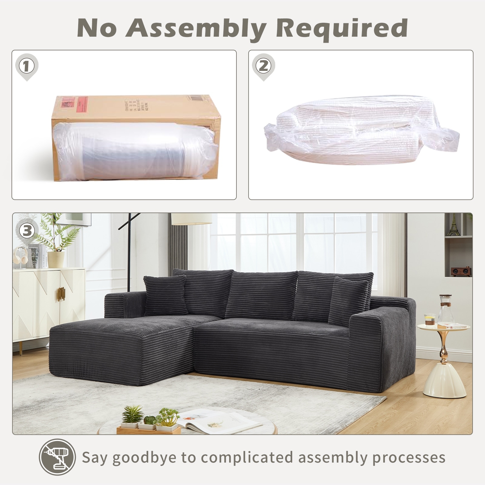 Modular Sectional Cloud Sofa with L-Shape Chaise, Oversized Corduroy Upholstered Boneless Sofa, Corner Sofa with Deep Seat