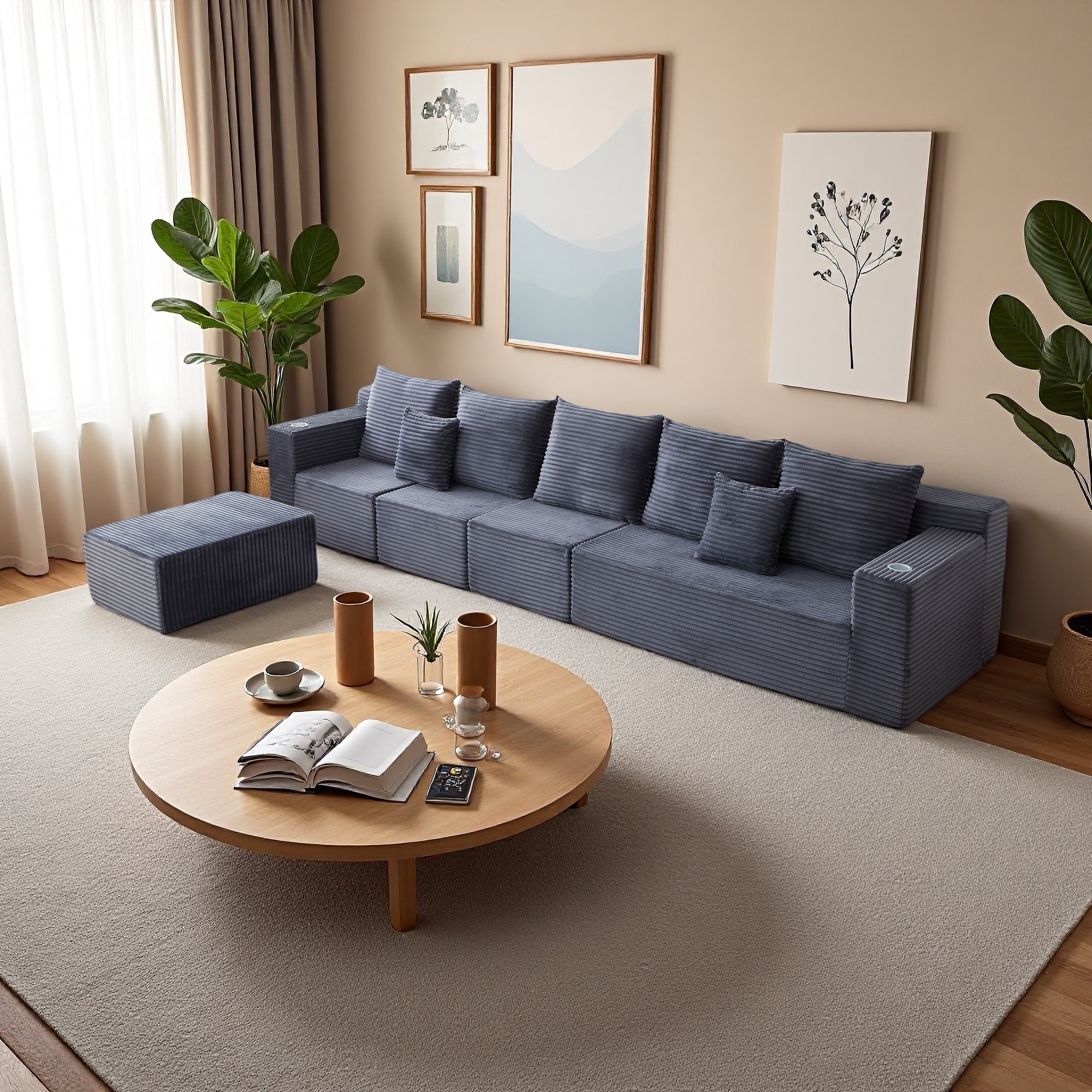 Modern Modular Corduroy Sectional Sofa with Ottoman