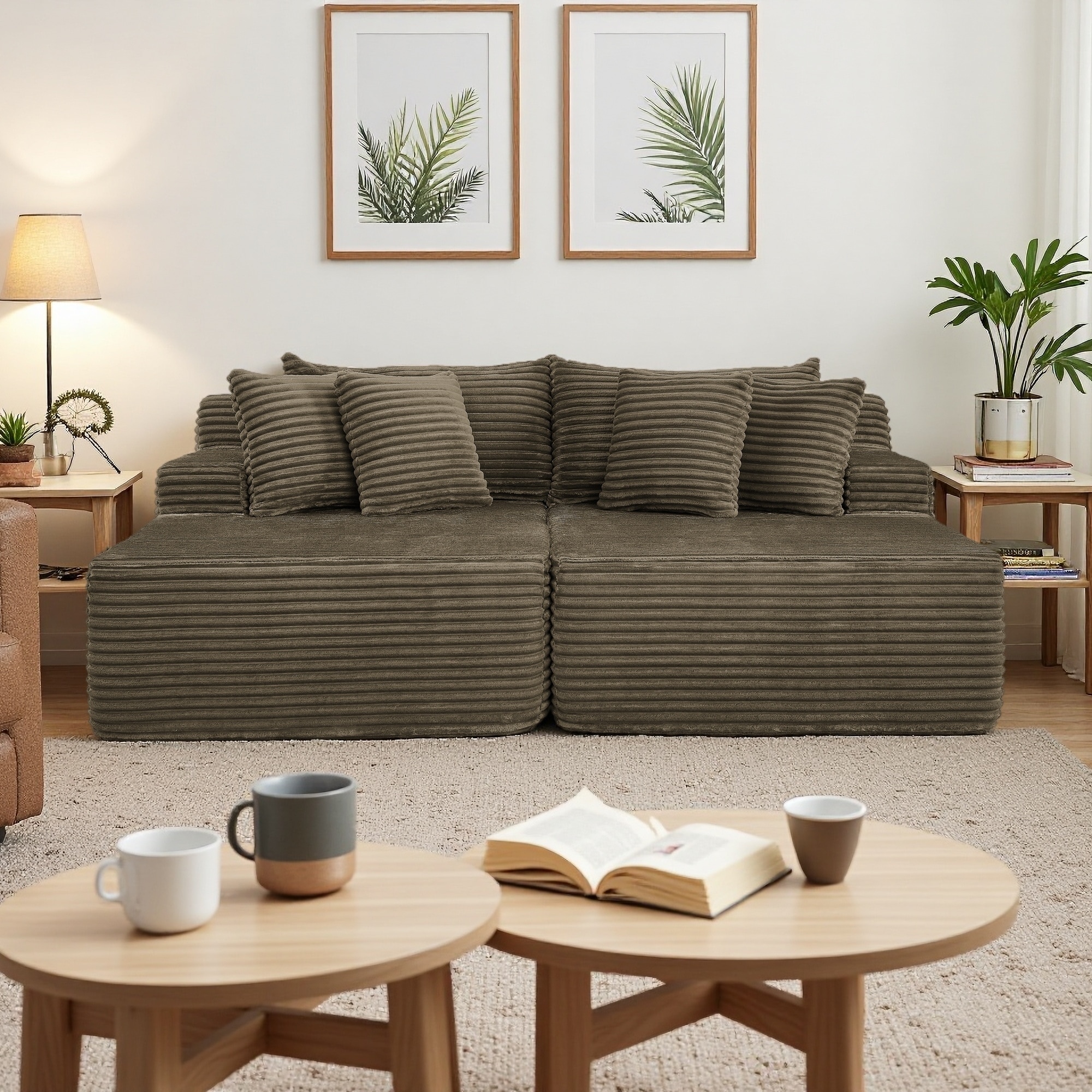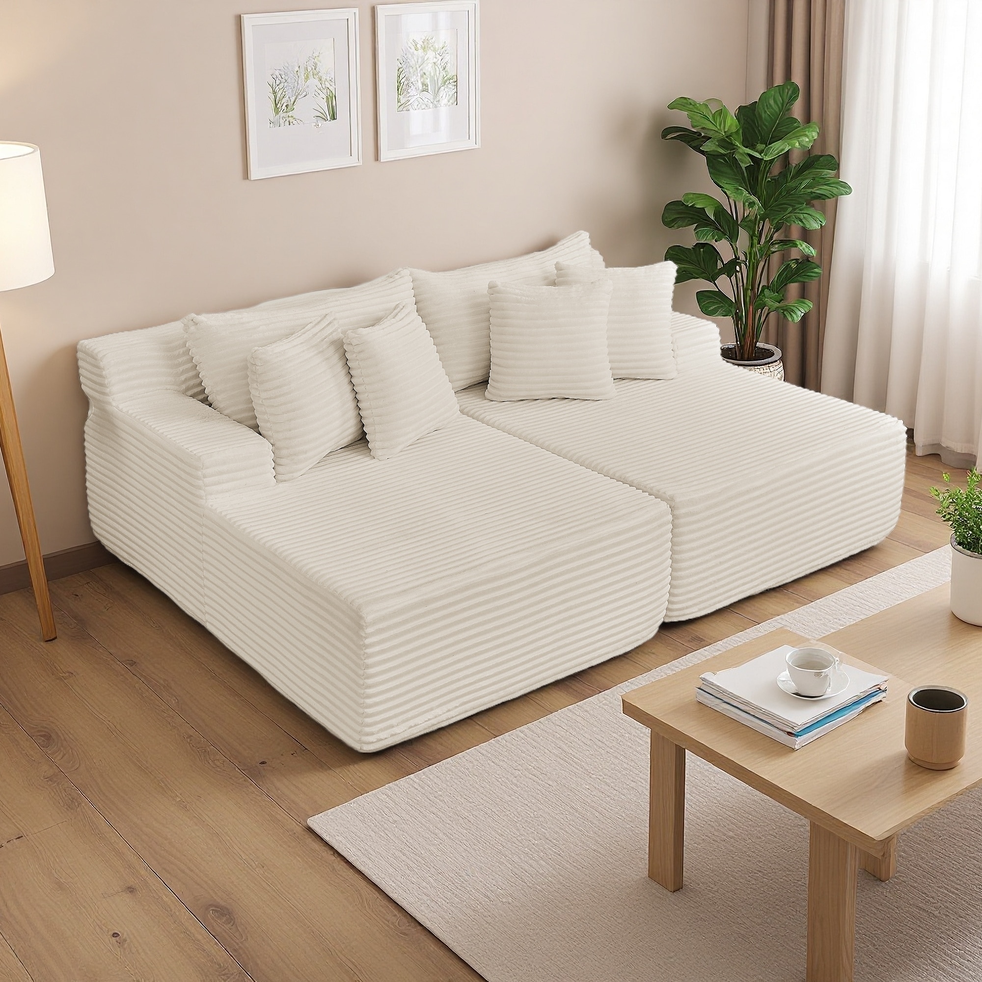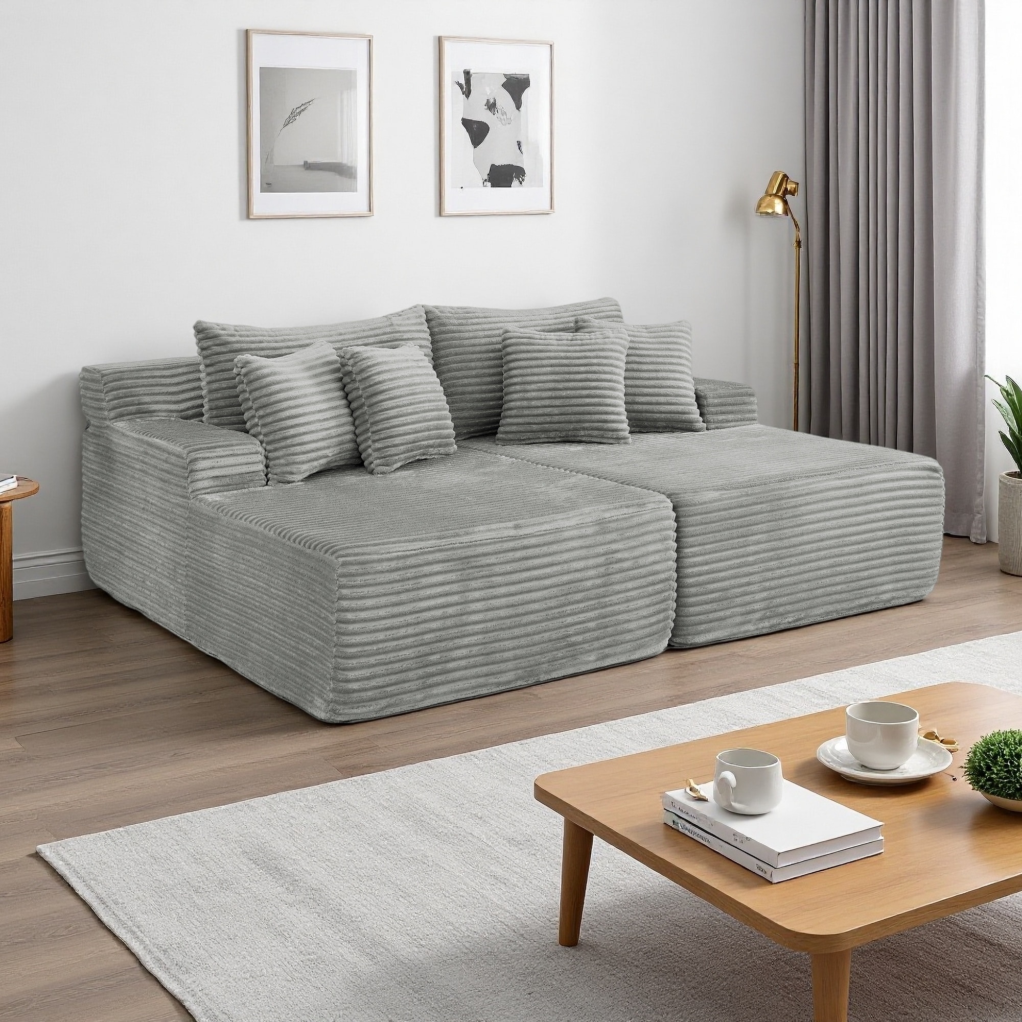 Modular Sleeper Sofa Bed Corduroy L-shaped Sectional Sofa with Chaise Floor Standing Multi Person Compressed Sofa with Ottoman