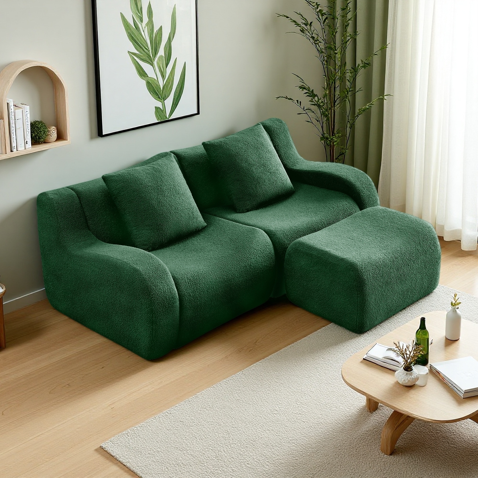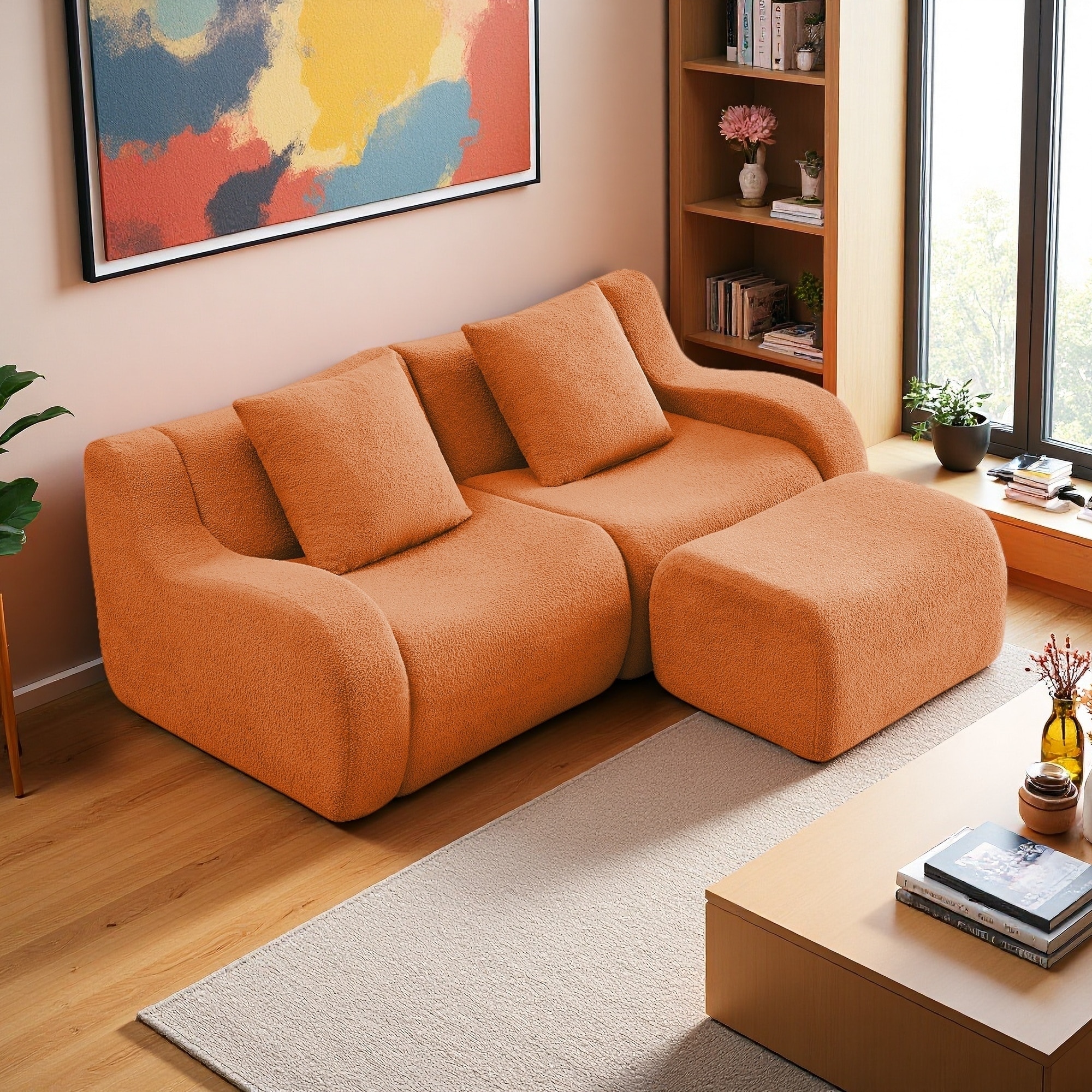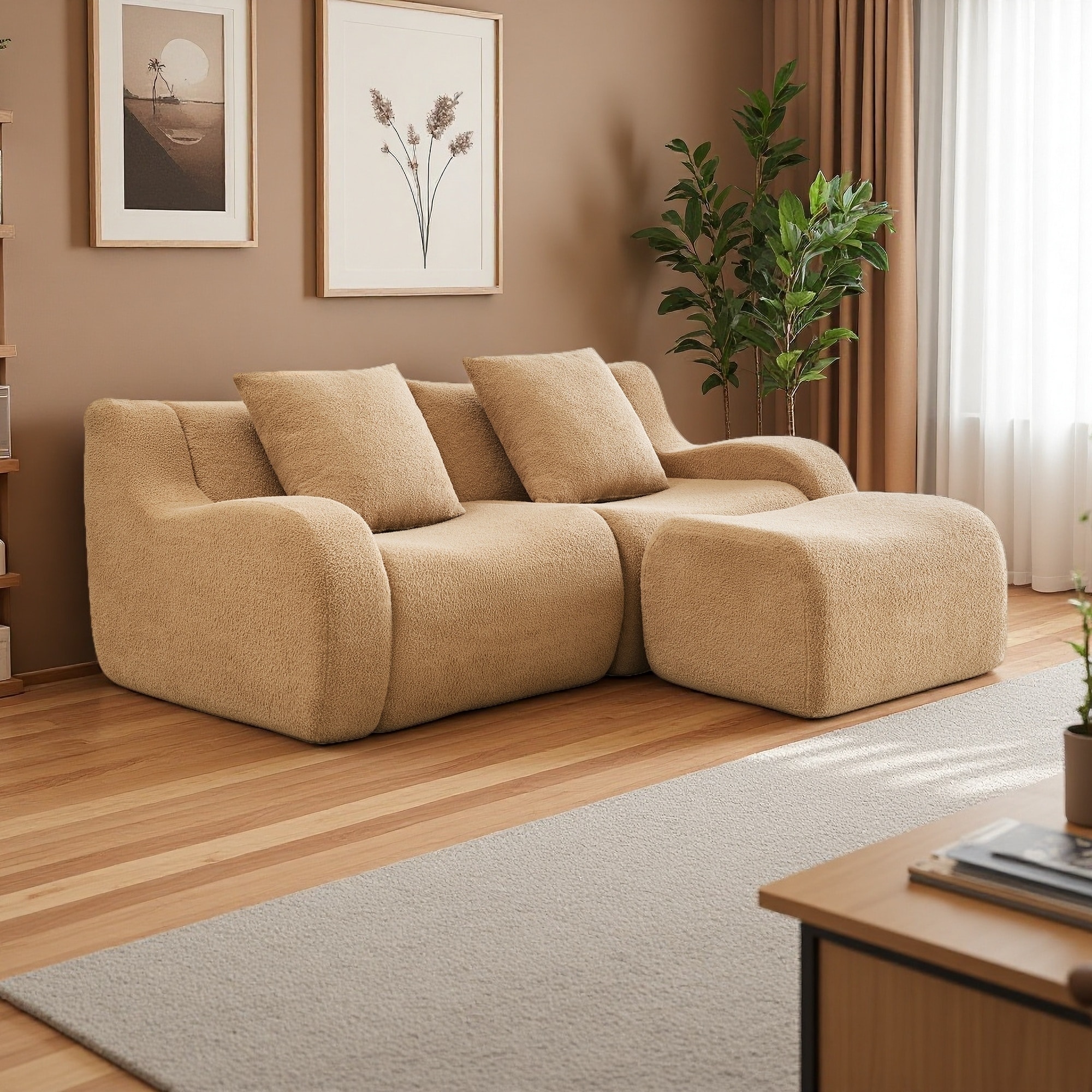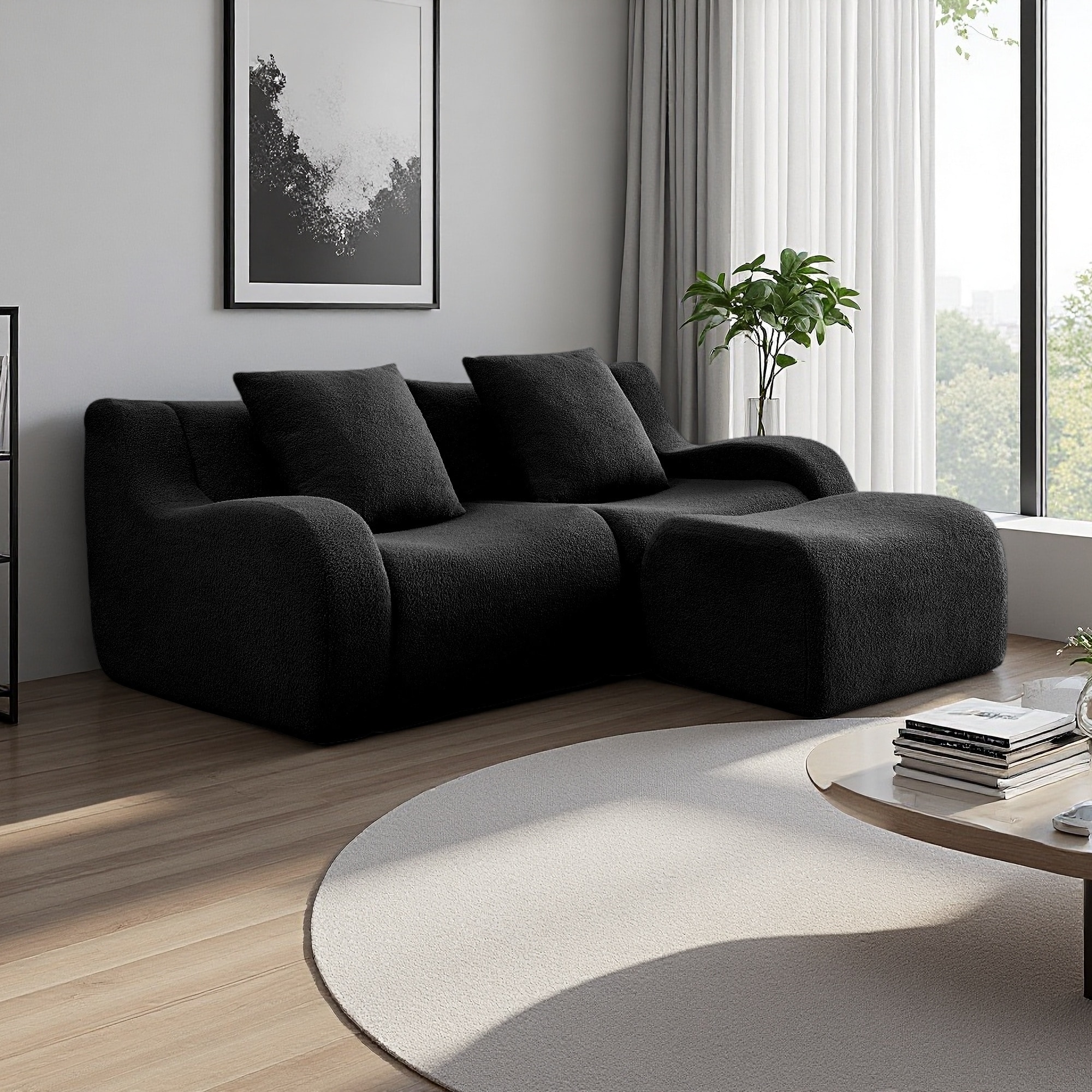 82.7" L-Shaped 2-Seat Teddy Fabric Sectional Sofa with Curved Armrest, Ergonomic