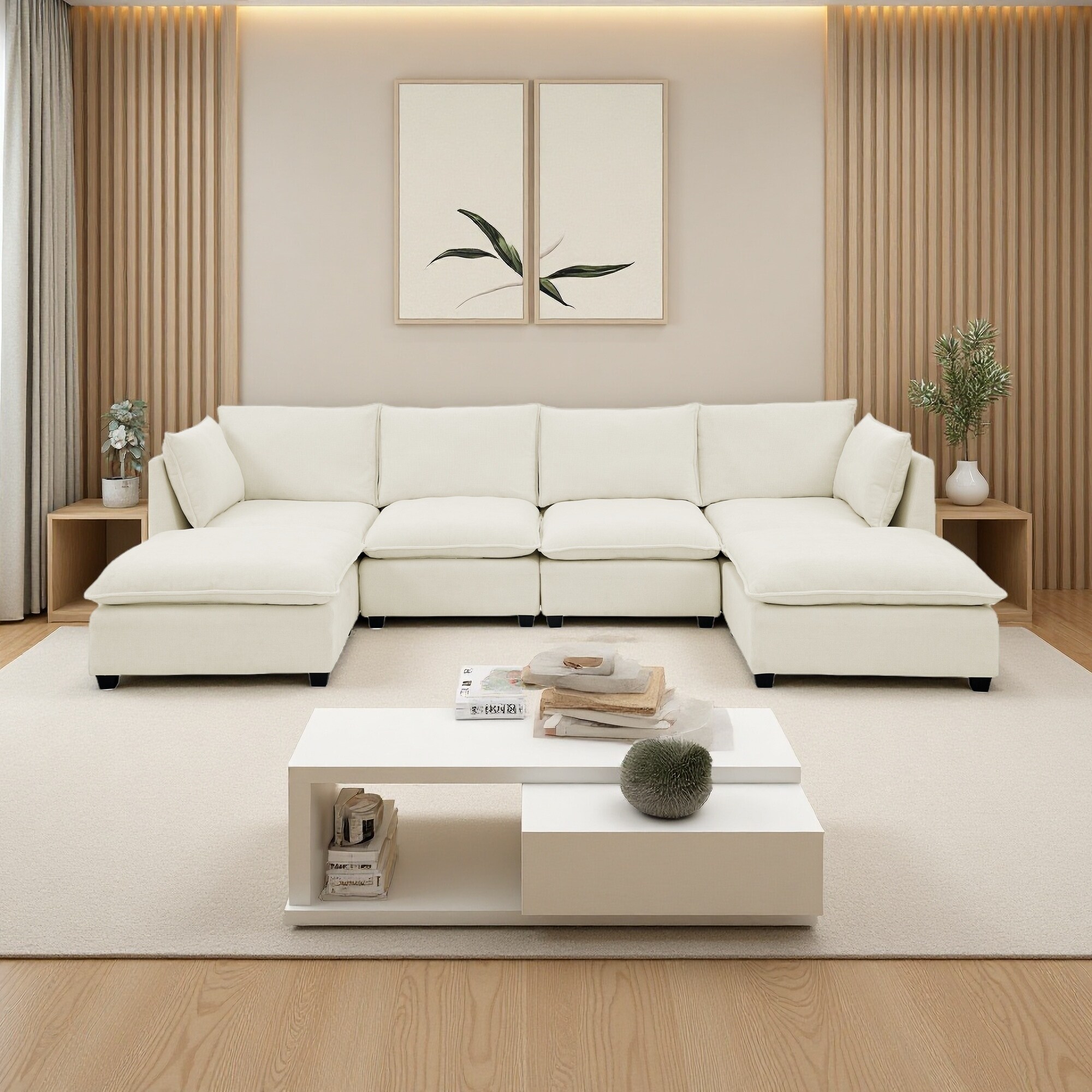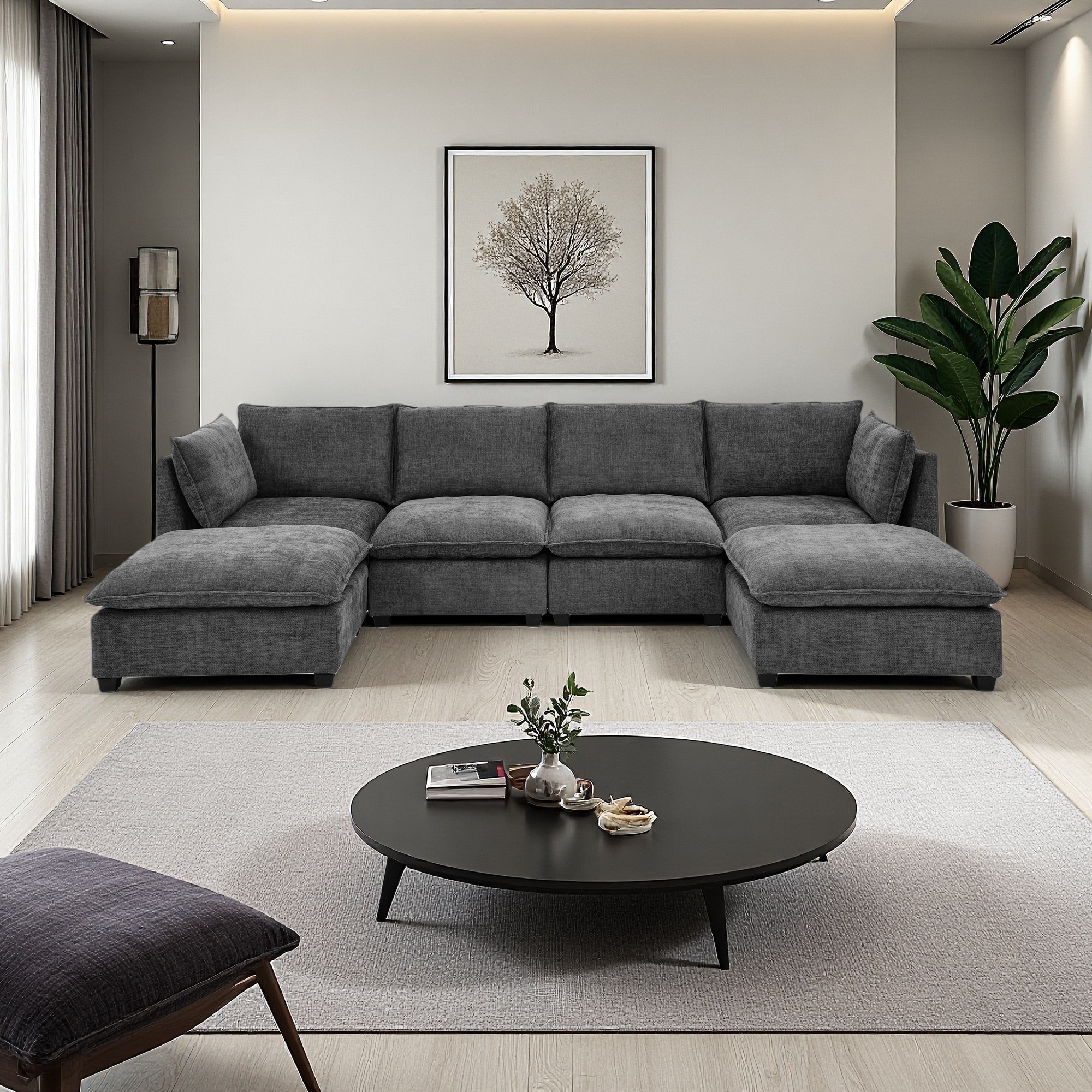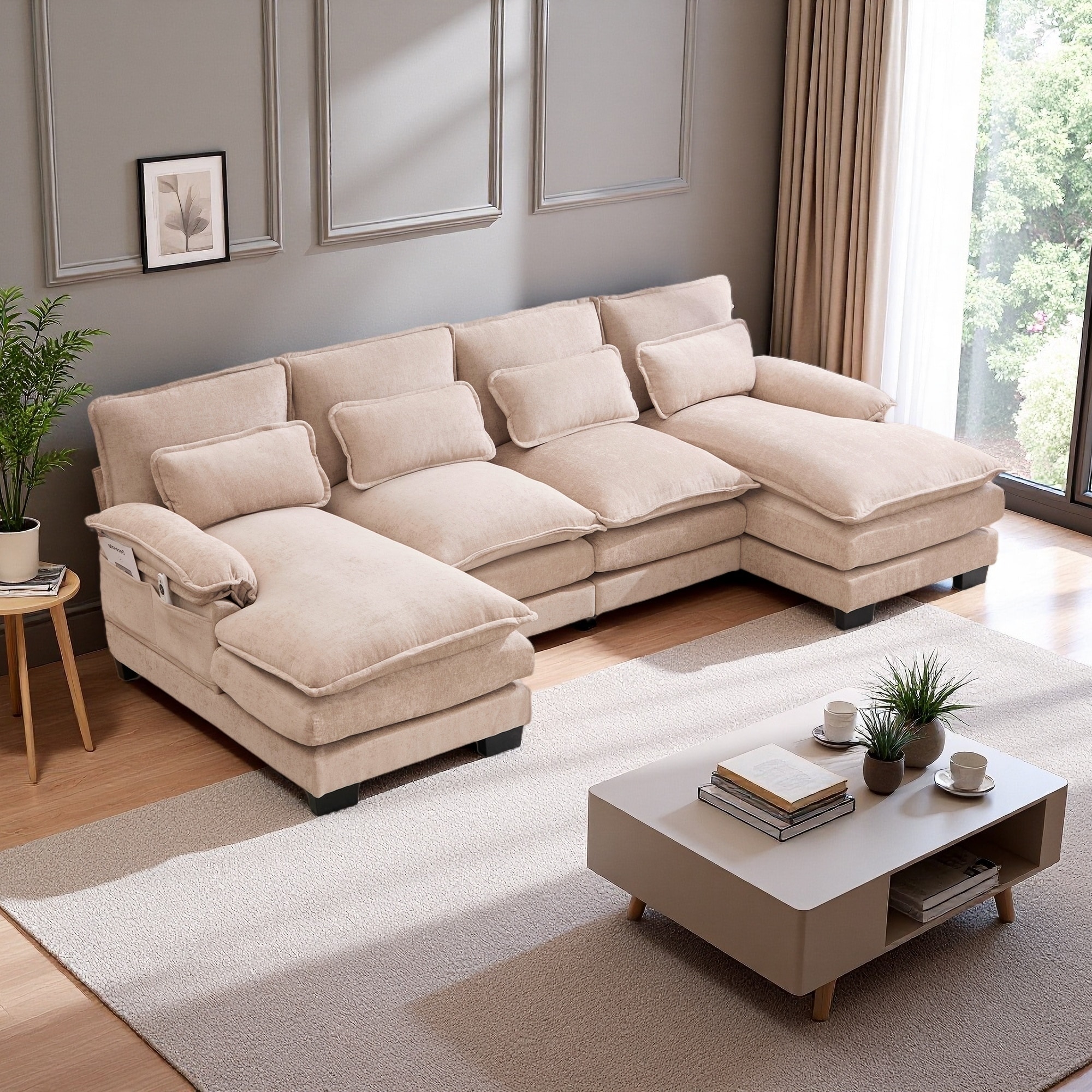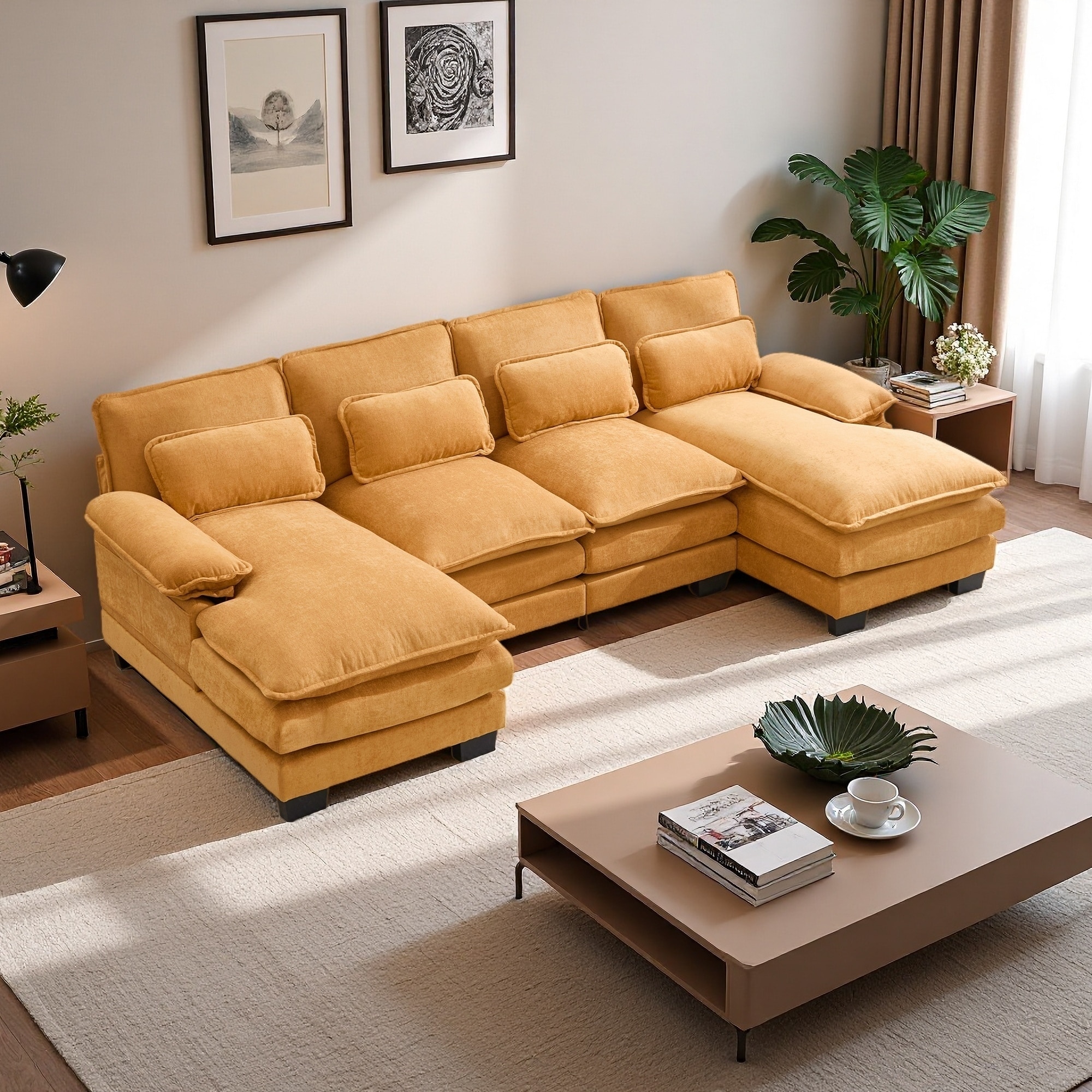 107.9" Chenille U-Shaped 4-Seat Modular Sectional Sofa with Double Chaise & Memory Foam