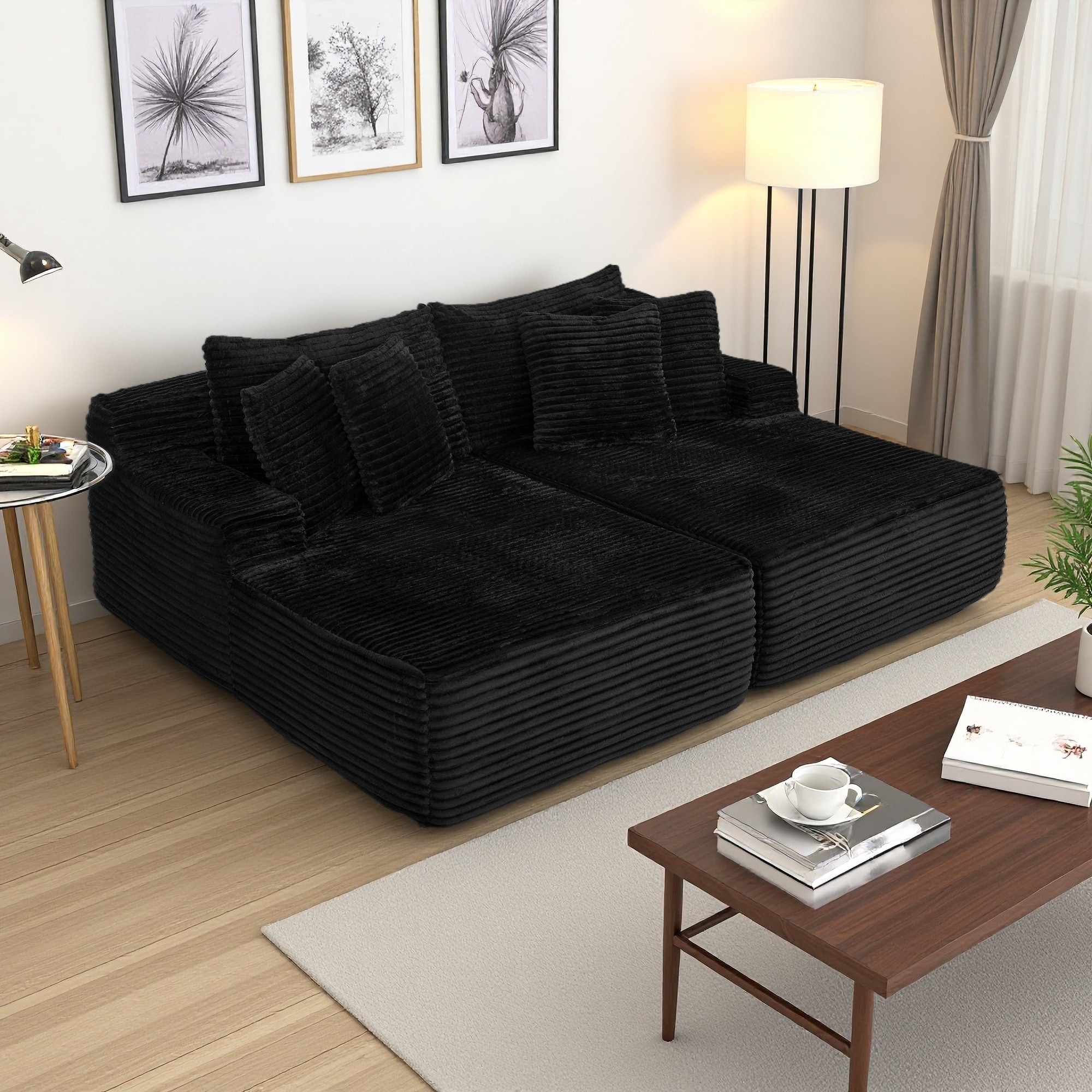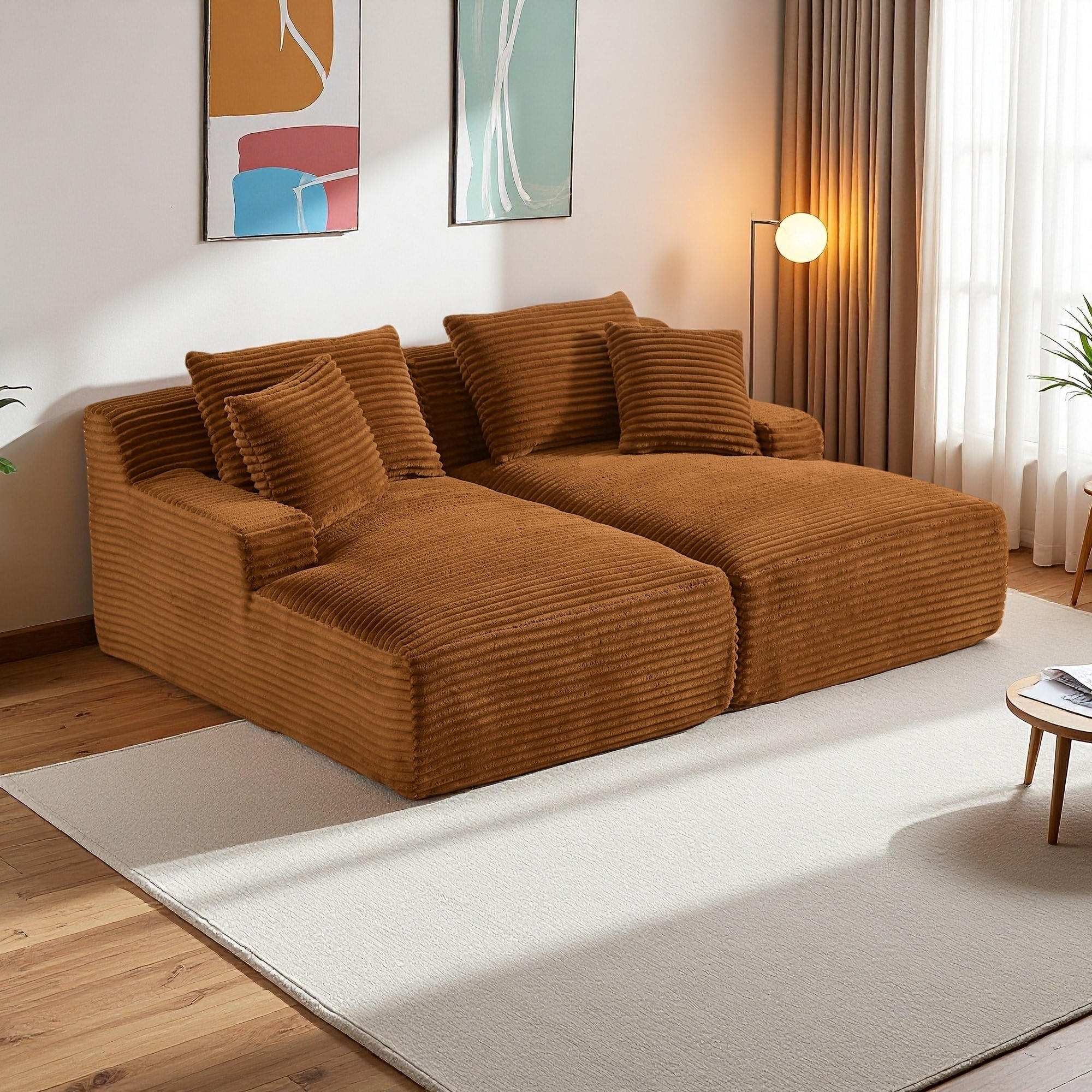 78.7" Corduroy Double Chaise Lounge Sectional Sofa, No Assembly