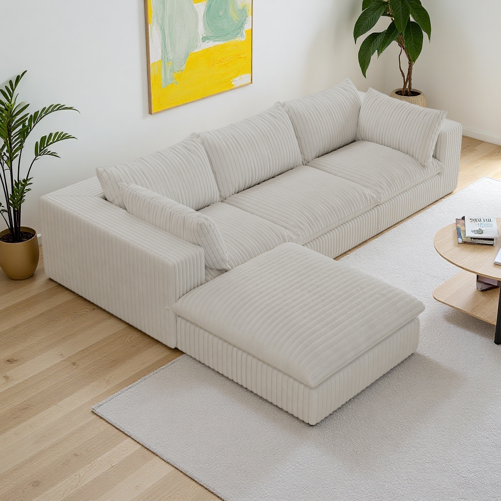 118.2" Corduroy Feather-Filled Modular 4-Seater Cloud Sofa with Deep Seat and Removable Cushions