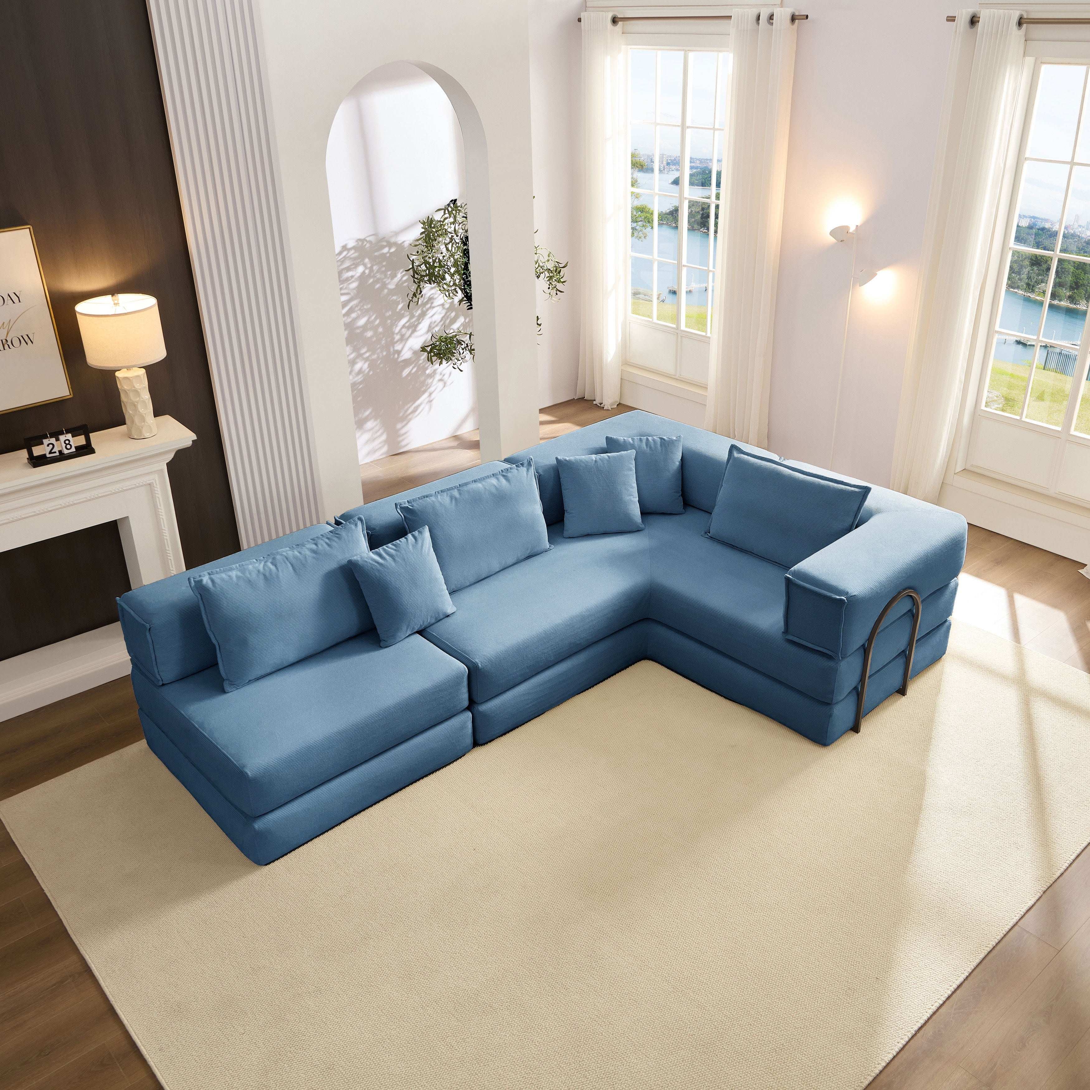 Convertible Sectional Sofa with 3 Ottomans,High-Resilience Foam