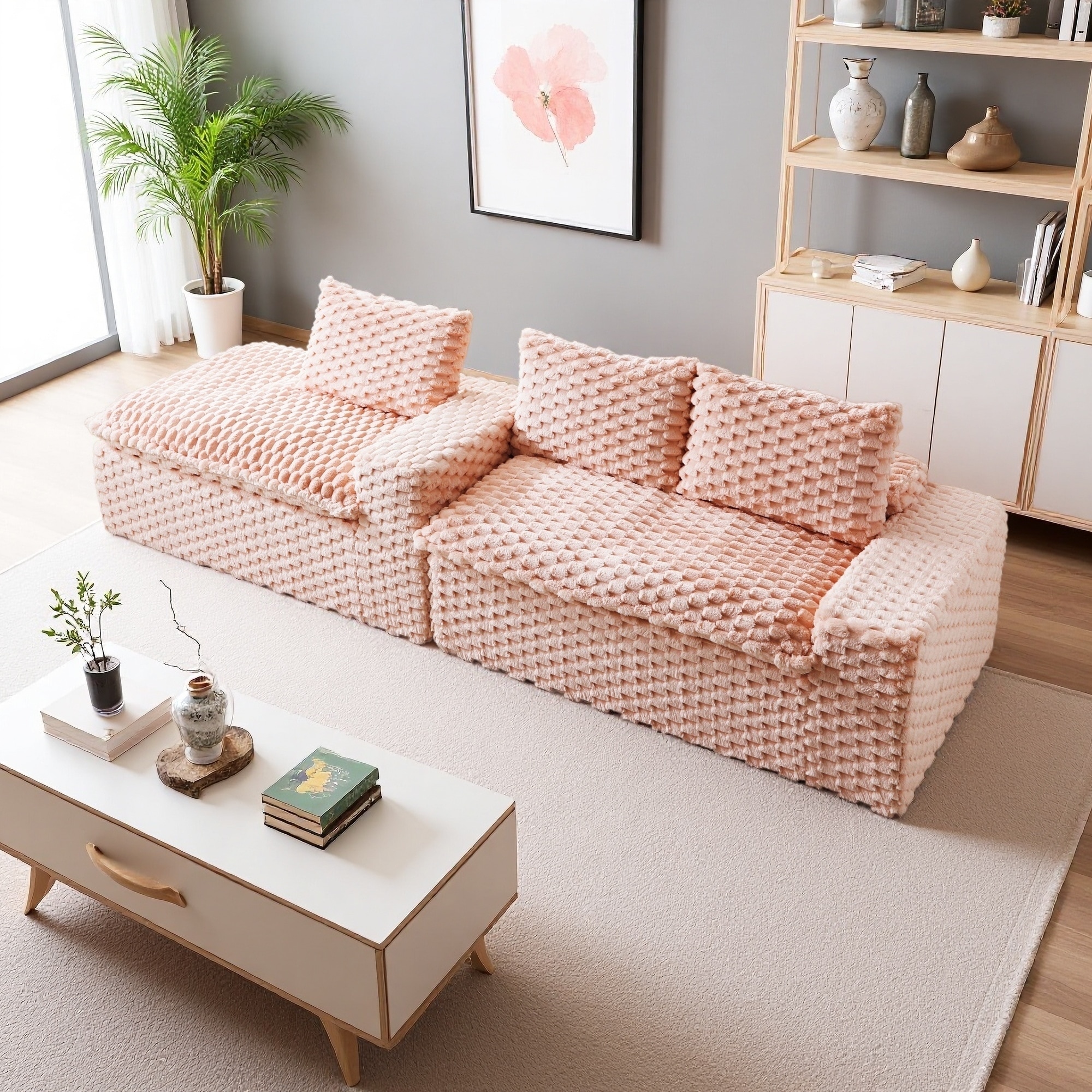 DIY Modular Corduroy L-Shaped Floor Sofa Set with 6 Pillows