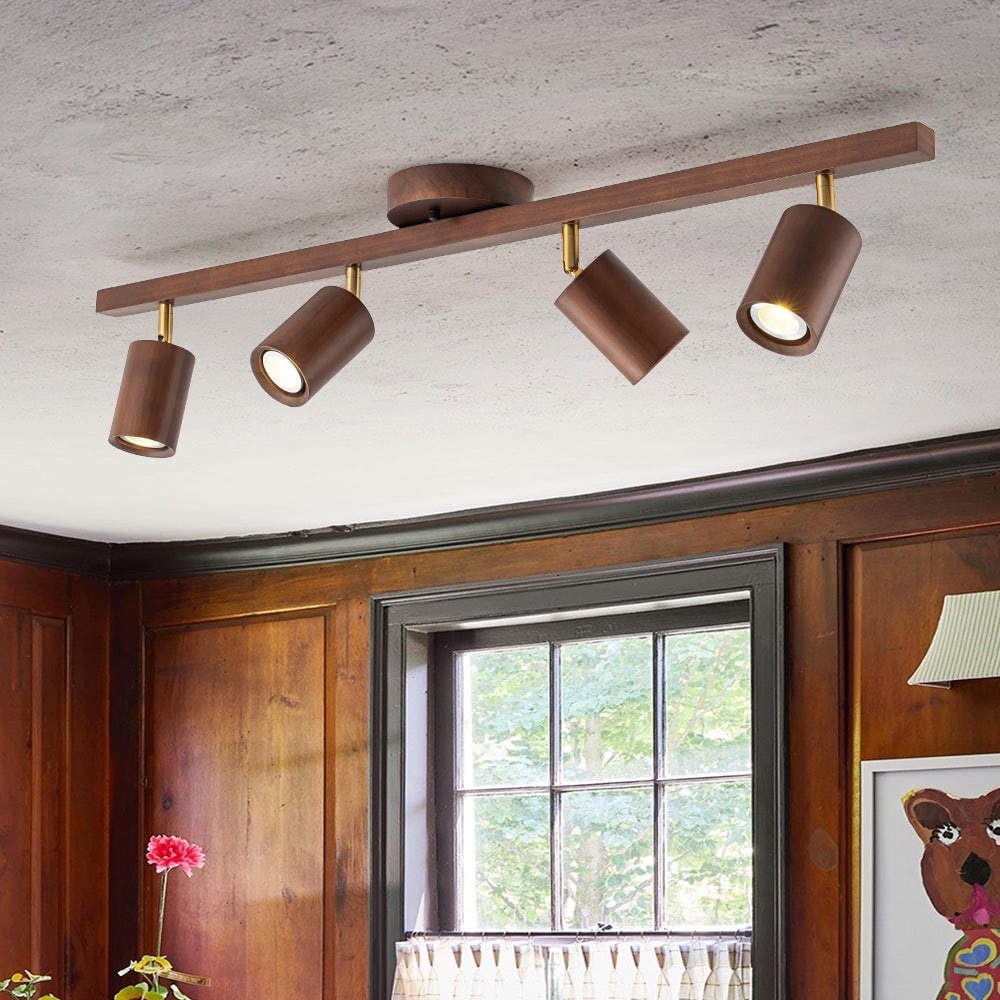 4-Light Walnut Wood Grain Adjustable Linear Track Light 39.4in