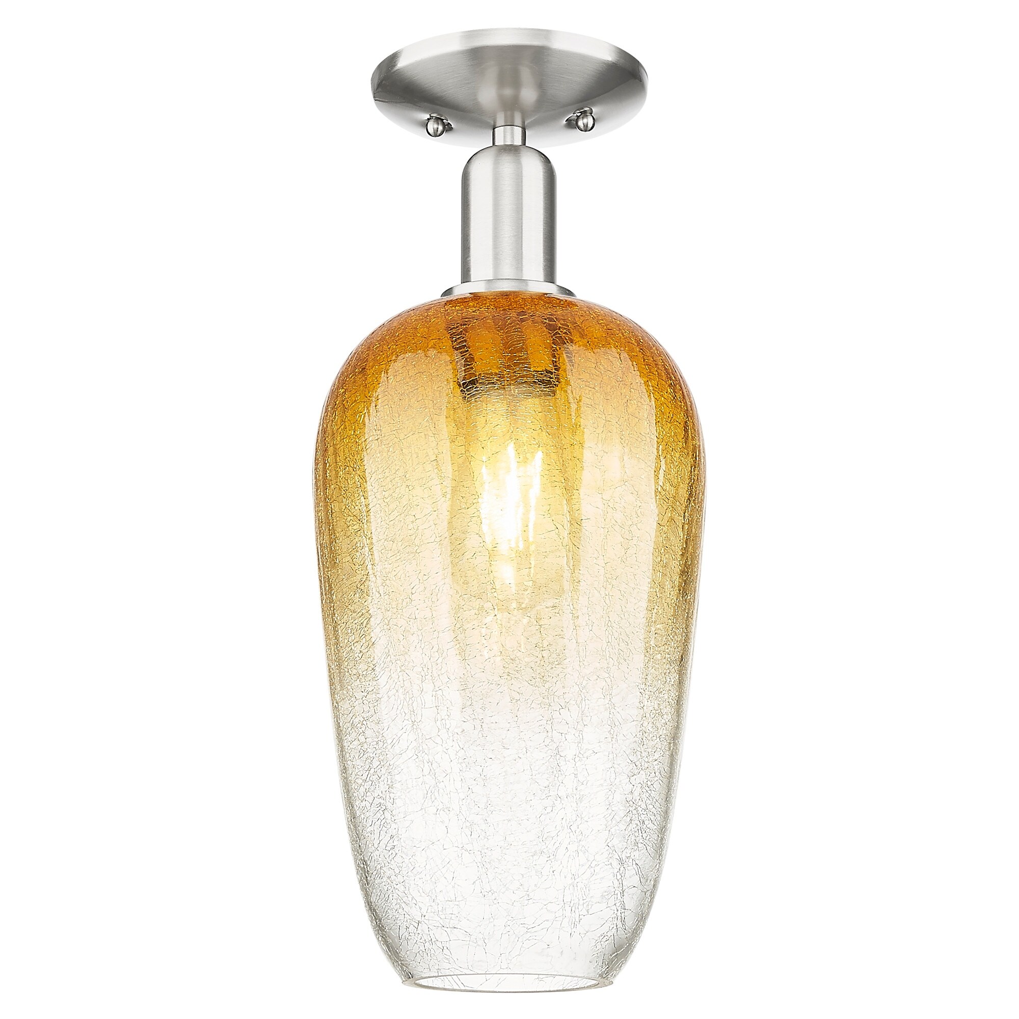 8 in. Chrome Modern 1-Light Semi-Flush Mount Light with Hammered Glass Shade For Living Room, Hallway, Dining Room