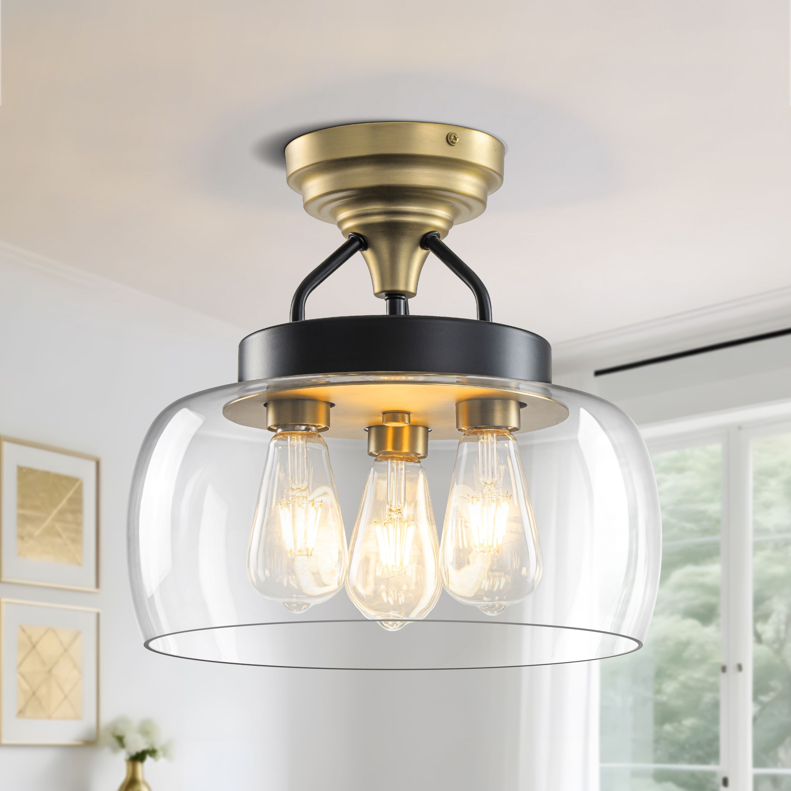 Starsky 3-Light Modern Clear Glass Dome Flush Mount Ceiling Light, Thick One-Piece Drum Shade