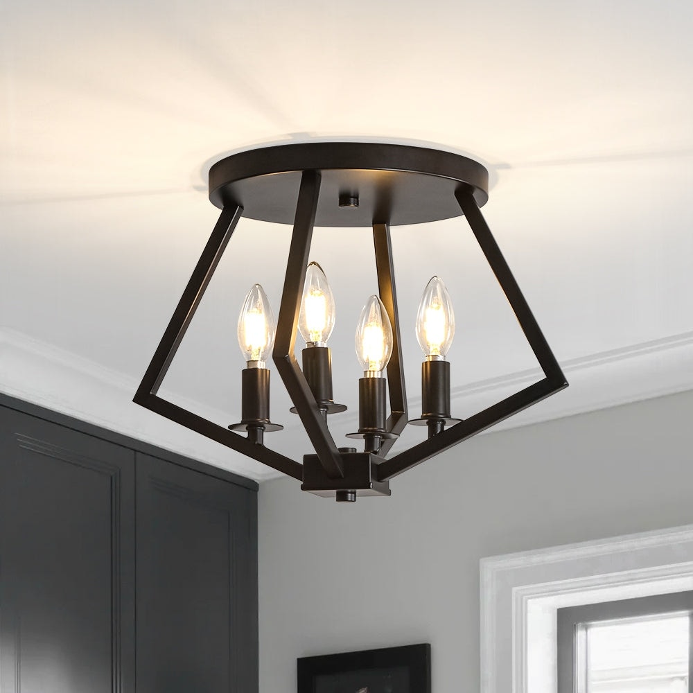 Farmhouse 4-Light Candle Metal Geometric Cage Semi Flush Mount