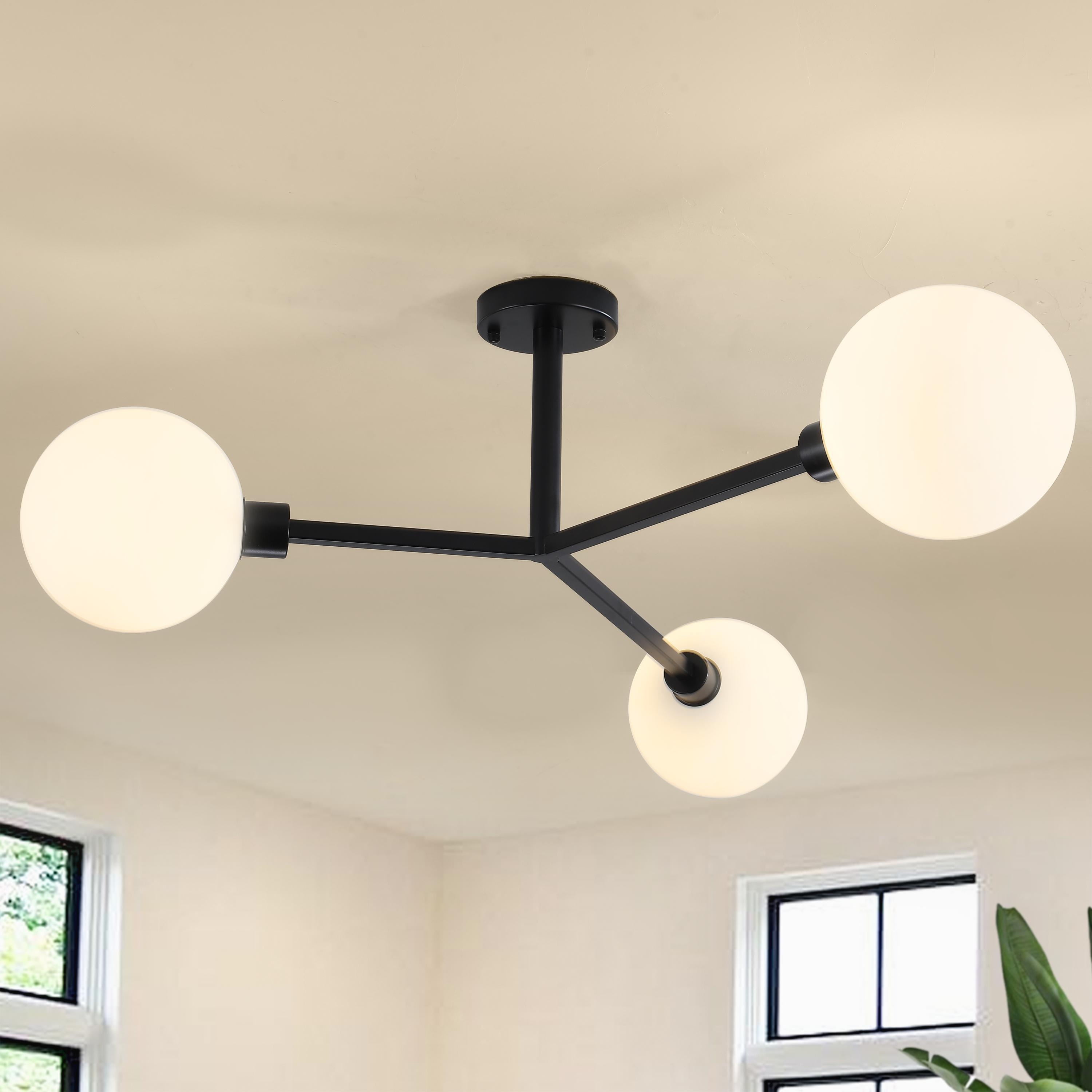3-Light Semi Flush Mount Ceiling Light with Frosted Glass Shade