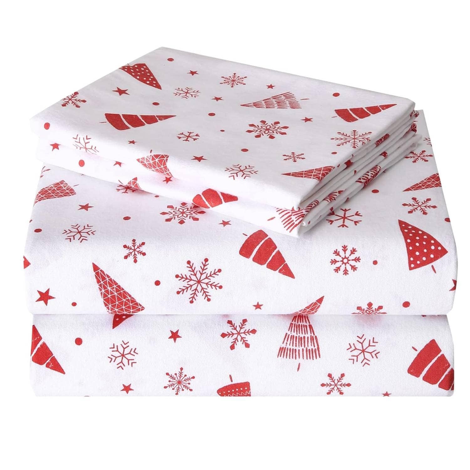 Christmas Red Snowflake Tree Bed Sheets Set with 16 Inches Deep Pocket