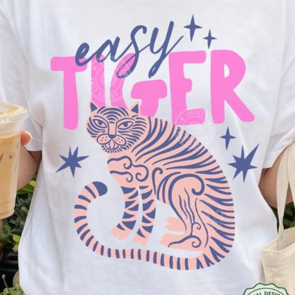 Easy Tiger T Shirt Retro Boho Tiger Graphic Tee grey s t Shirt