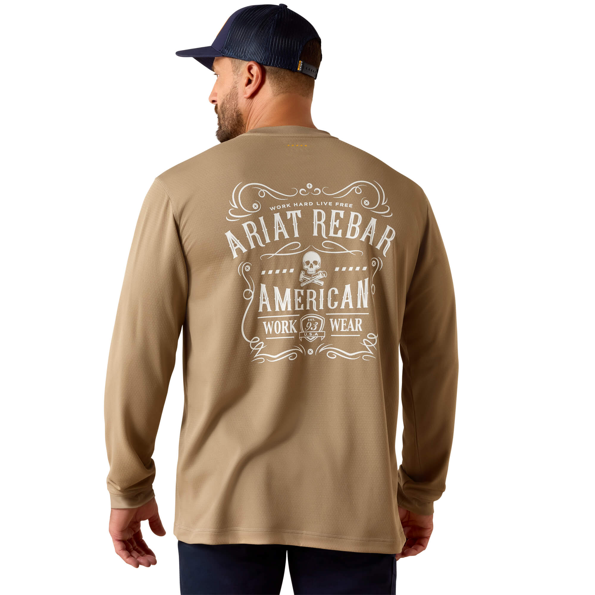 Men's Rebar Heat Fighter Label Long Sleeve T-Shirt in Greige, Size: XL-T by Ariat