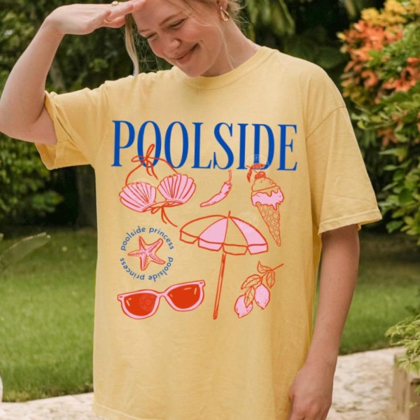 Poolside Shirt Summer Vacation Graphic Tee Beach Pool Vibes Outfit maroon l t Shirt