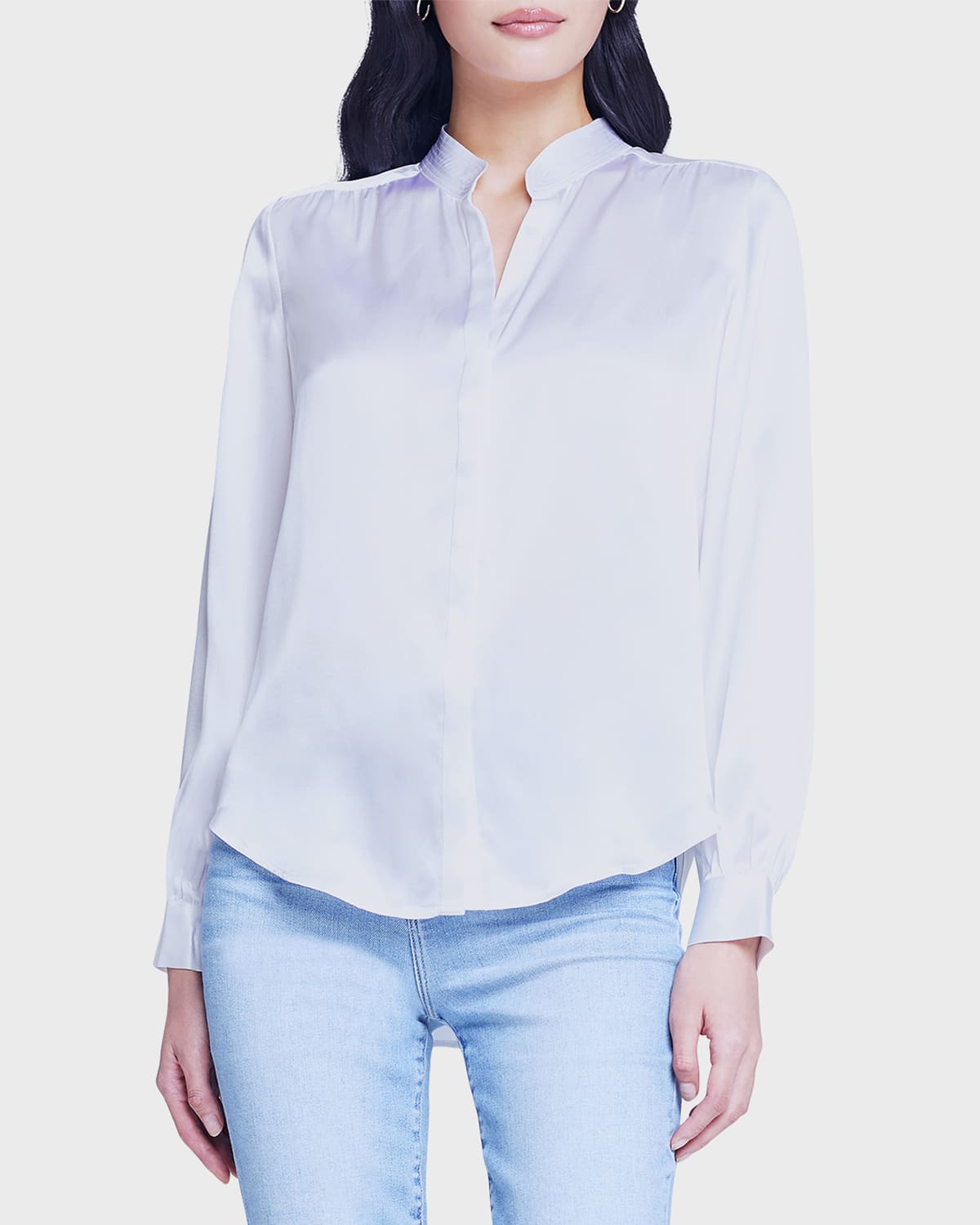 L'AGENCE Bianca Silk Charmeuse Button-Down Blouse