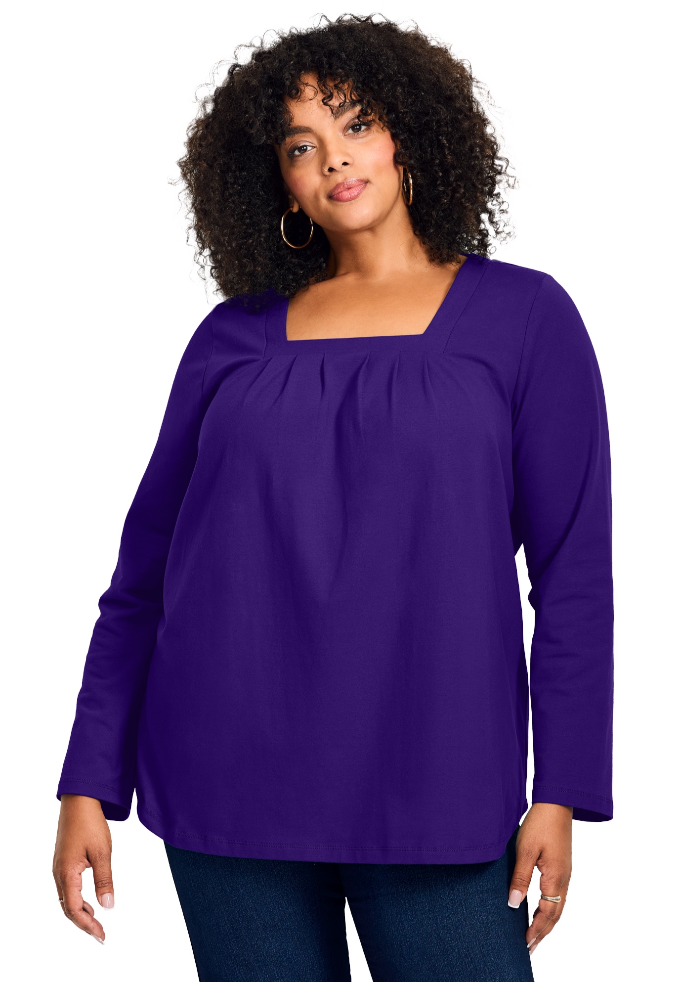 Plus Size Women's Square Neck Pleated Tunic by Avenue in Deep Grape (Size 34/36)