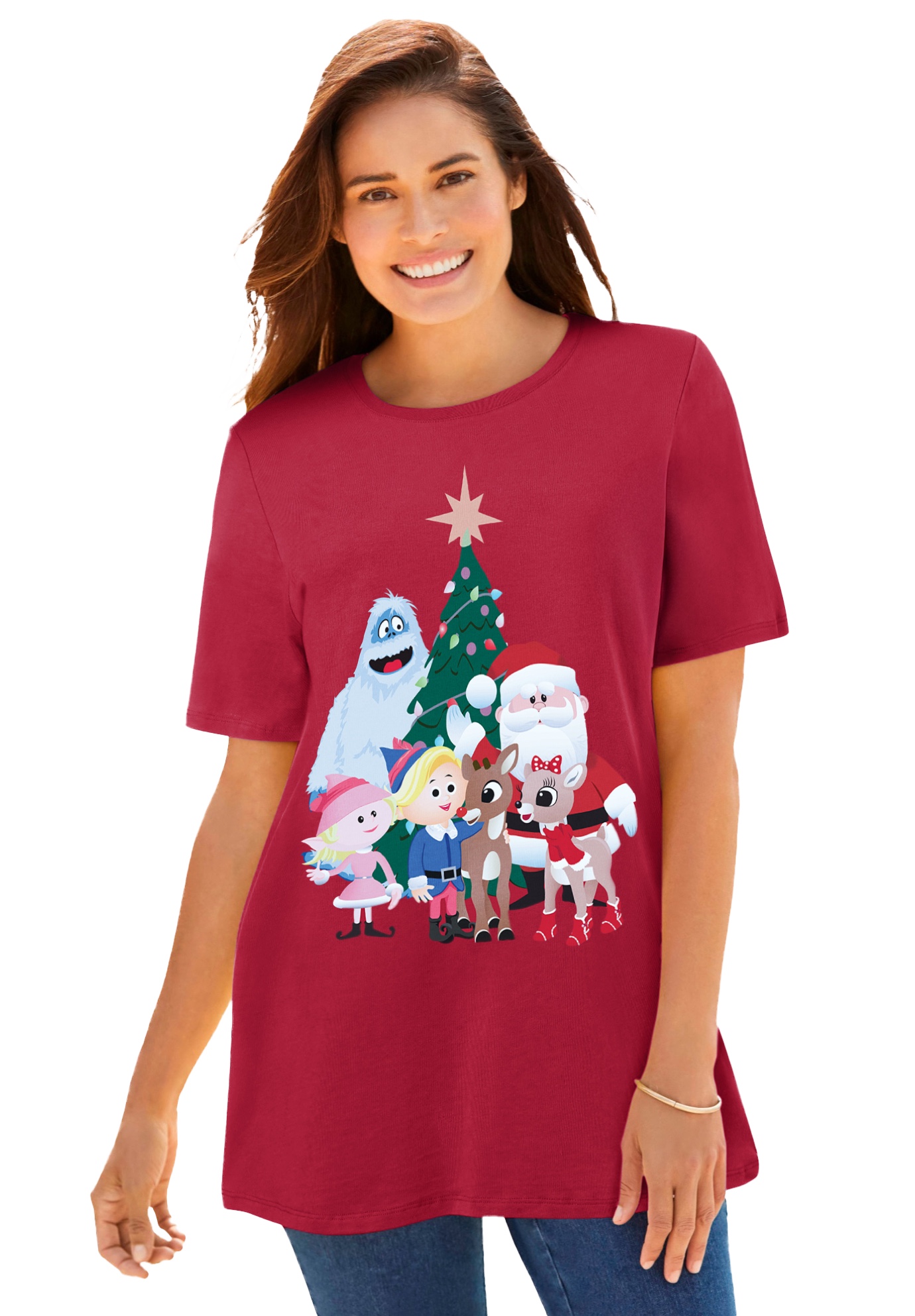 Plus Size Women's Disney Rudolph Friends Xmas Tee by Disney in Red Stella Friends (Size S)