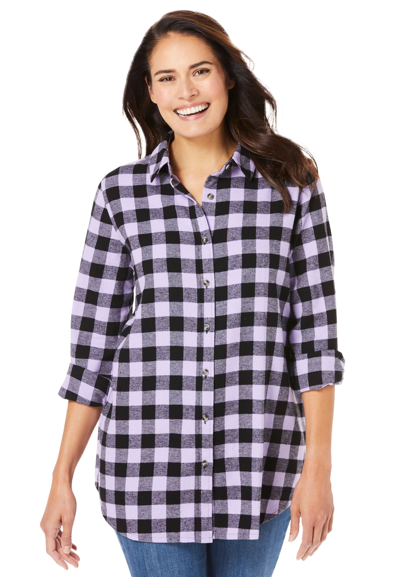 Plus Size Women's Classic Flannel Shirt by Woman Within in Soft Iris Plaid (Size 1X)