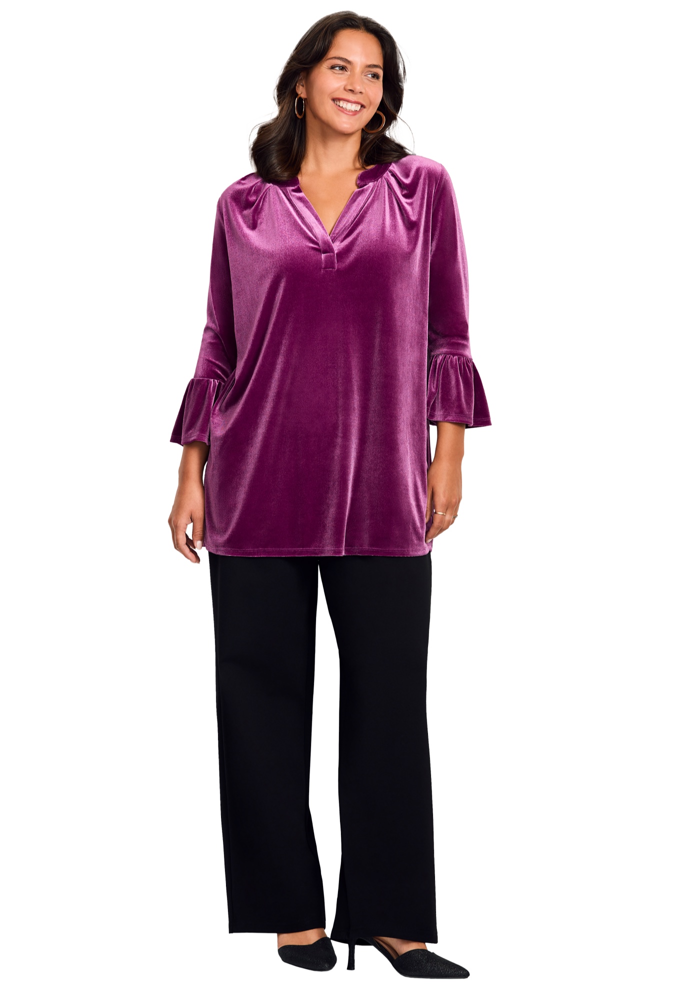 Plus Size Women's Split Neck Bell Sleeve Top by Avenue in Deep Berry (Size 18)
