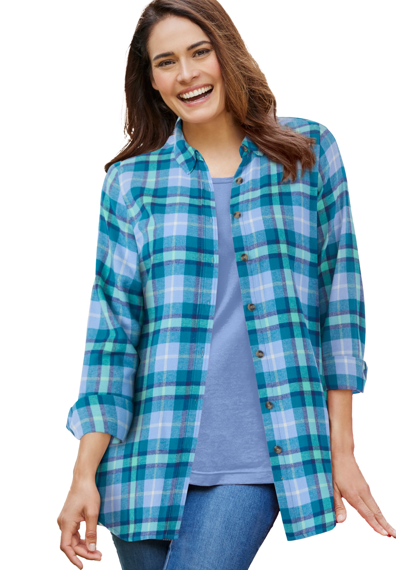 Plus Size Women's Classic Flannel Shirt by Woman Within in French Blue Cozy Plaid (Size 6X)