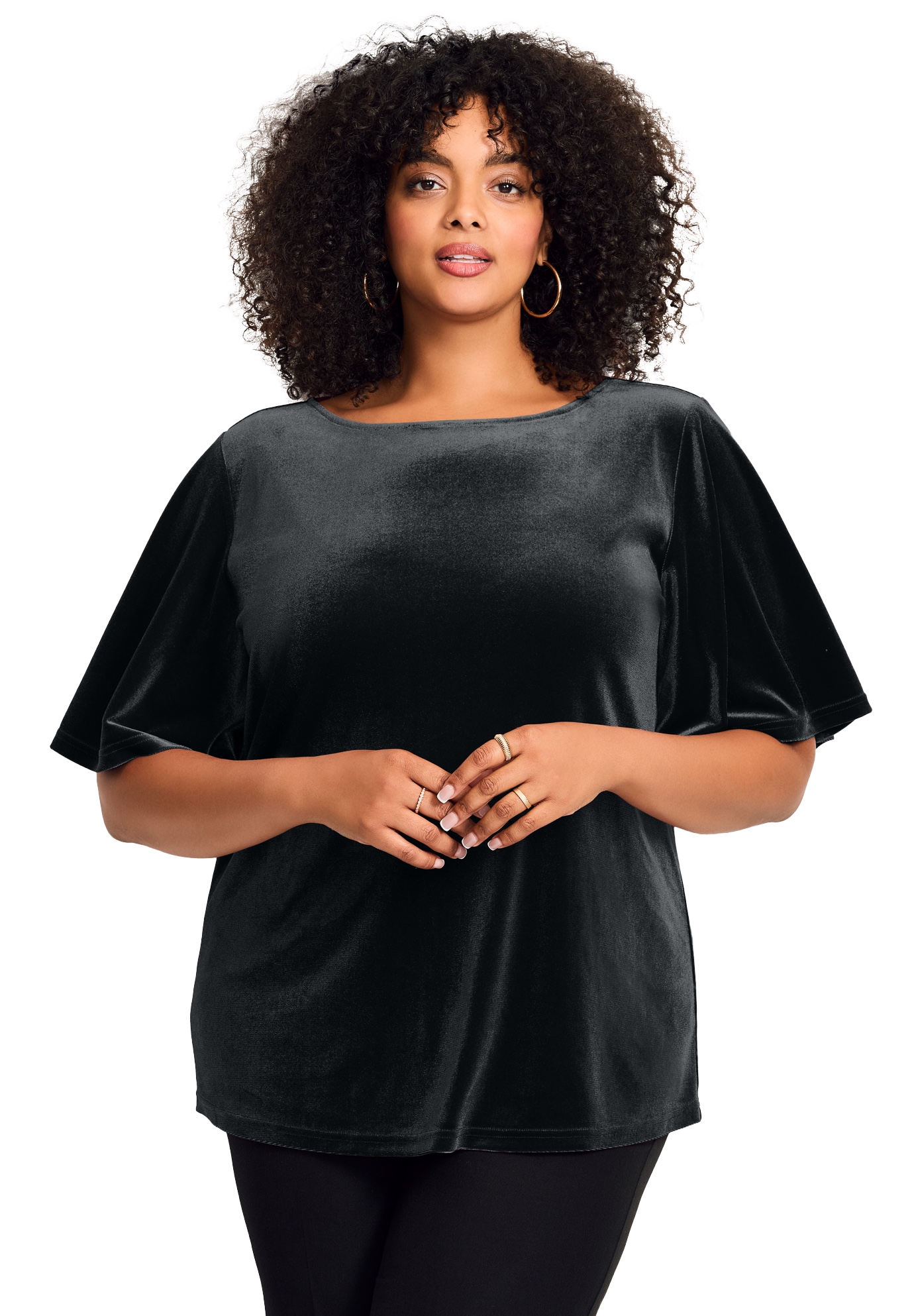Plus Size Women's Kimono Velour Sleeve Tee by Avenue in Black (Size 14)