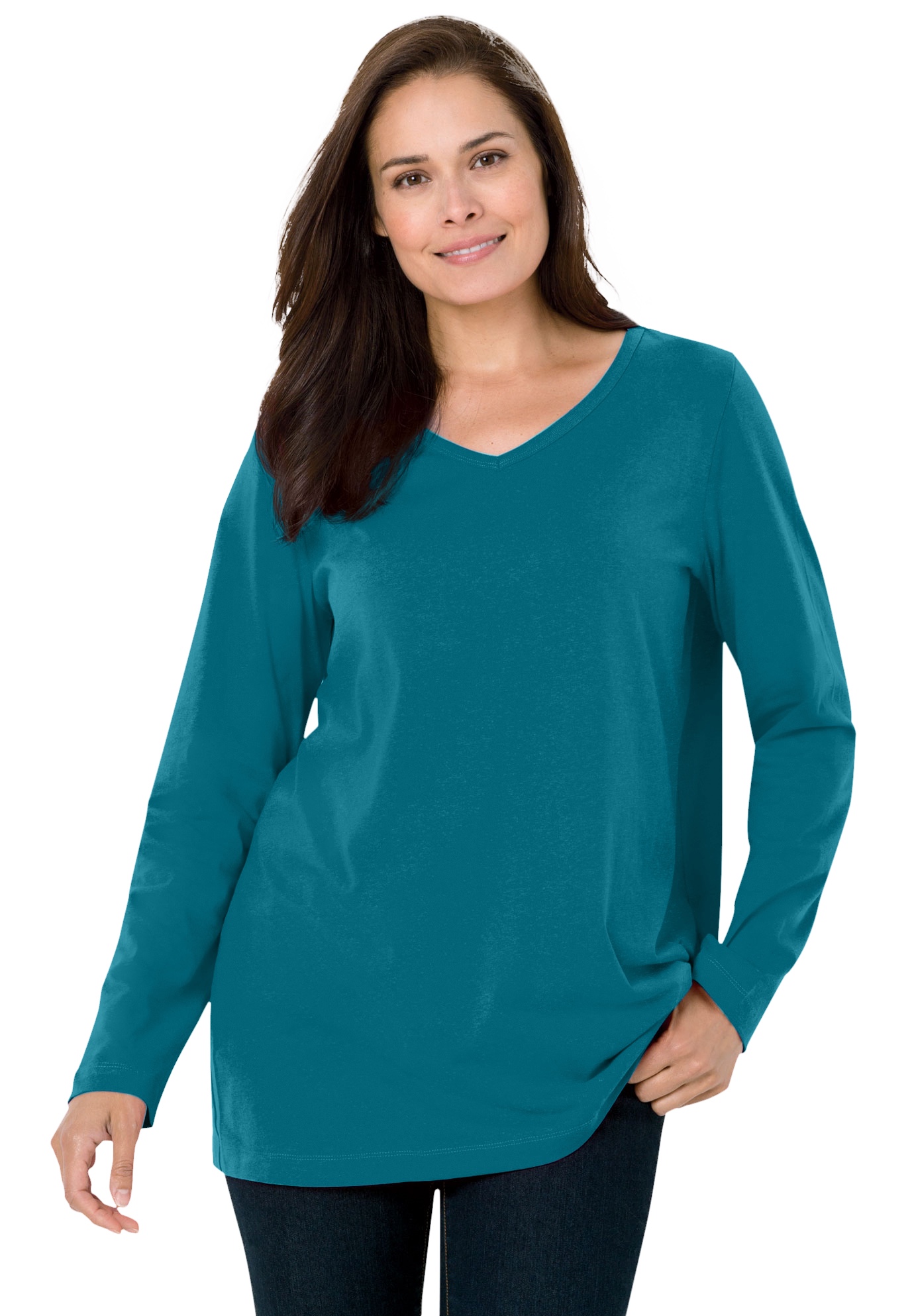Plus Size Women's Perfect Long-Sleeve V-Neck Tee by Woman Within in Deep Teal (Size 1X) Shirt