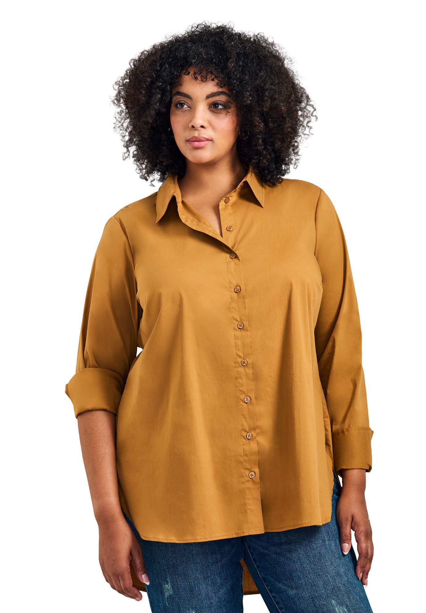 Plus Size Women's Stella Classic Button Up Shirt by Avenue in Copper (Size 16)