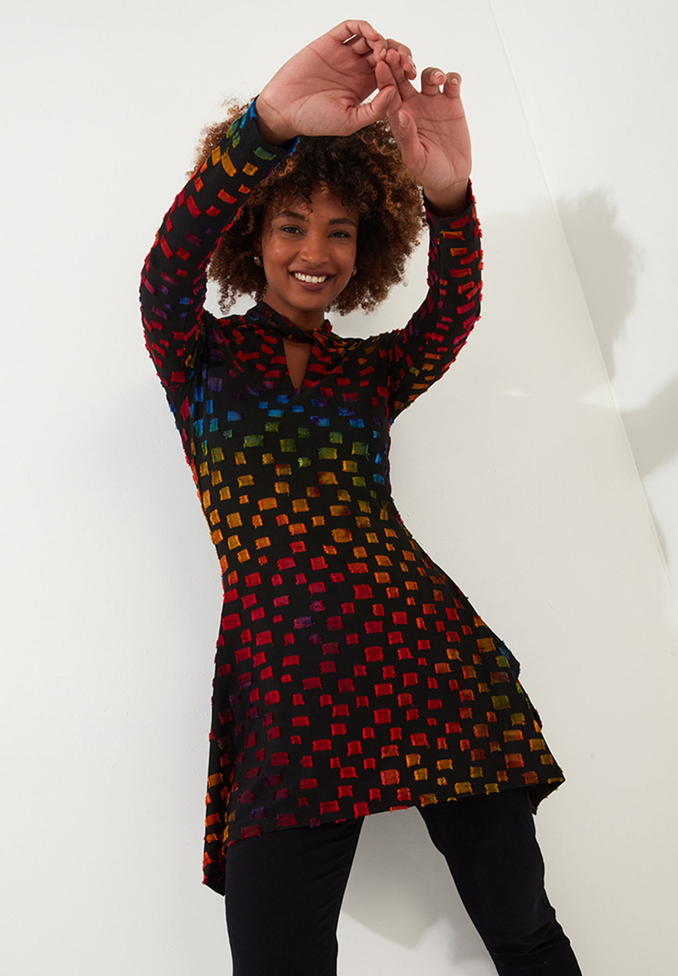 Plus Size Women's Sharkbite Keyhole Burnout Tunic by Joe Browns in Multicolor Abstract Geo (Size L)