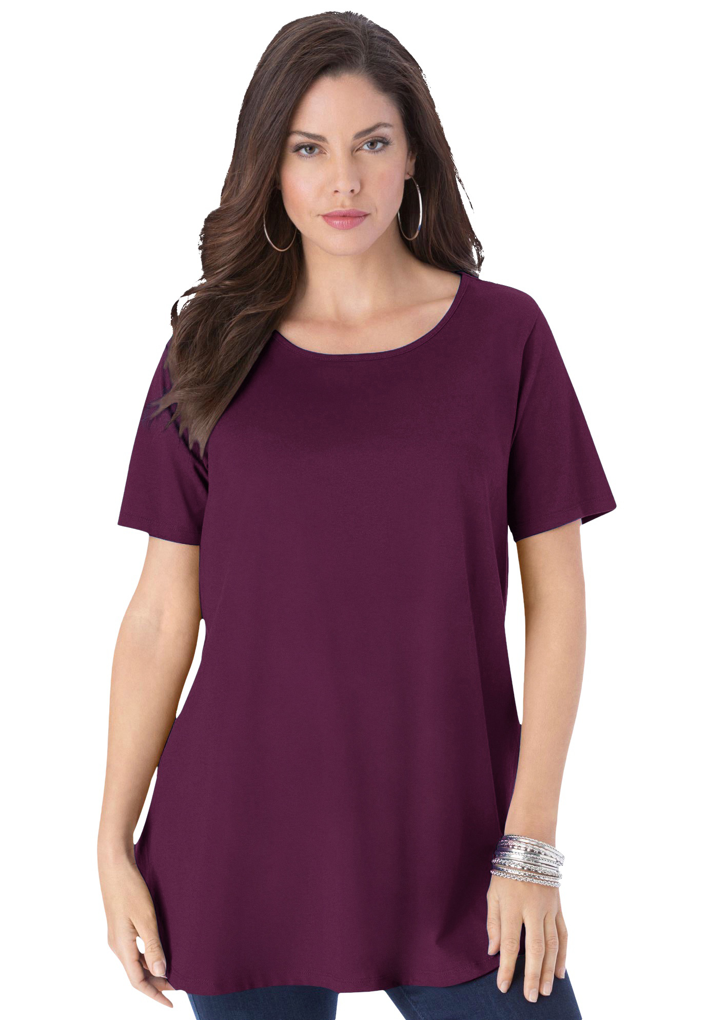 Plus Size Women's Plus Size Cotton Ultimate Swing Tee with Keyhole Back by Roaman's in Dark Berry (Size M) Short Sleeve T-Shirt