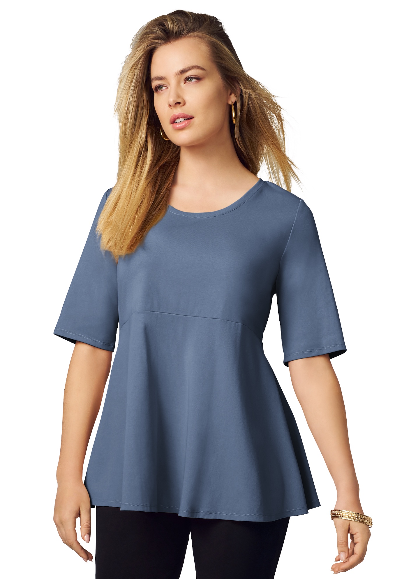 Plus Size Women's Stretch Cotton Peplum Tunic by Jessica London in Slate Grey (Size 18/20) Top