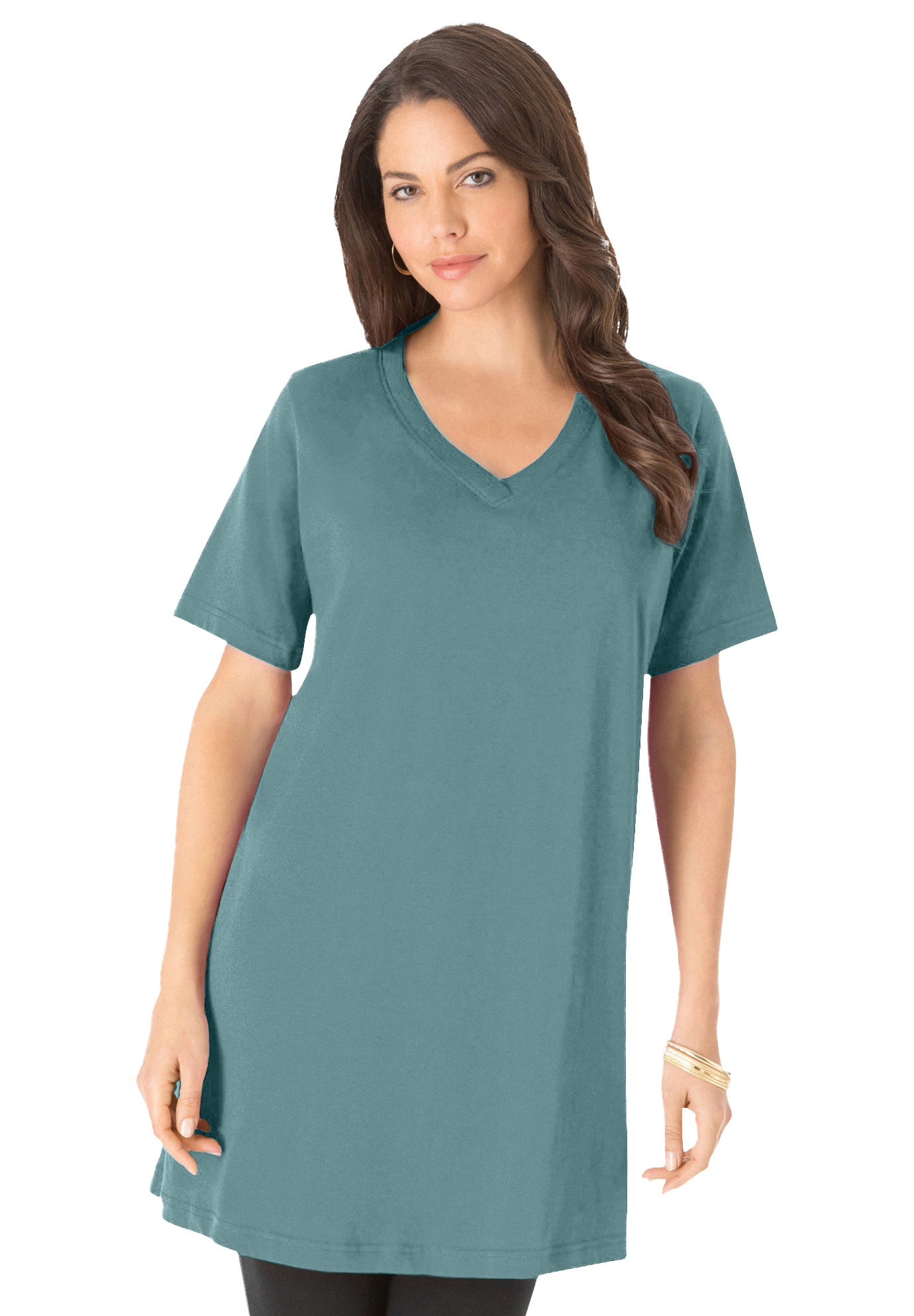 Plus Size Women's Plus Size Cotton Short Sleeve V-Neck Ultimate Tunic by Roaman's in Cool Sage (Size 5X) Long T-Shirt Tee